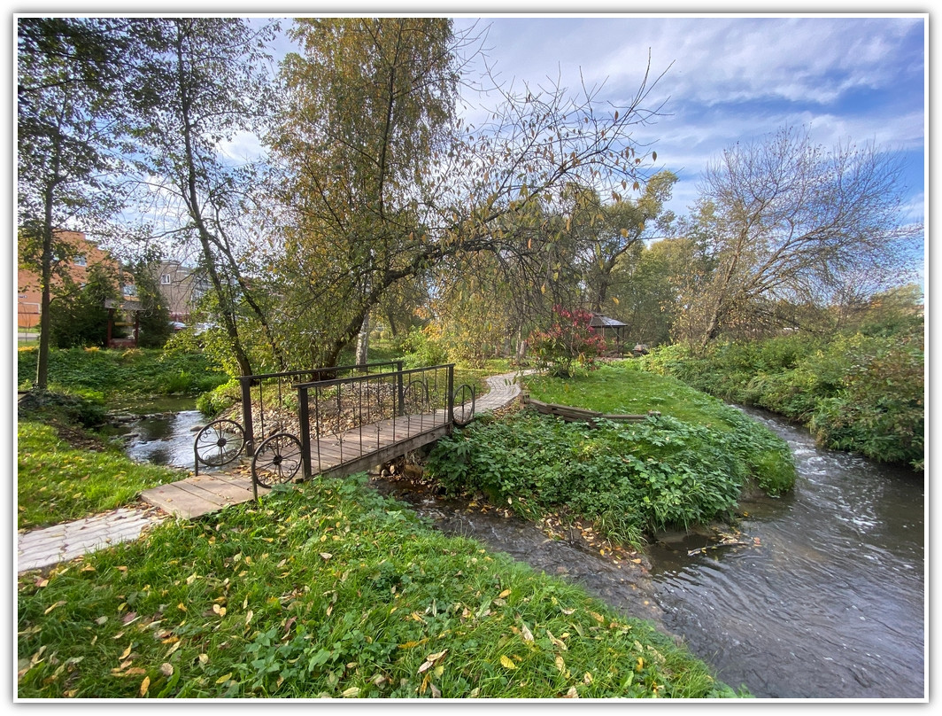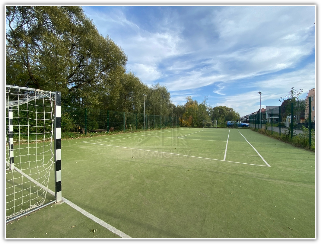 По территории поселка протекает ручей, вокруг которого создан очень красивый ландшафт из мостиков, зон барбекю, зон релакса, детских площадок, площадок для праздников, так же есть современная спортивная площадка, где летом можно поиграть в теннис, мини-футбол, волейбол и баскетбол, а зимой покататься на коньках.