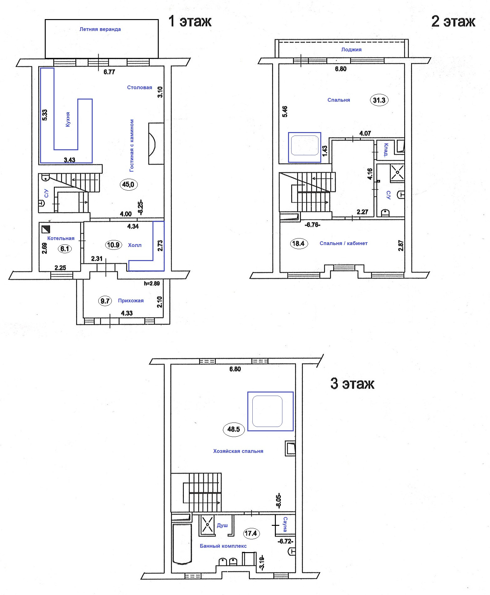 2 этаж: спальня- 31 кв.м. с балконом, спальня/кабинет- 19 кв.м. с балконом, санузел с душем, кладовка;