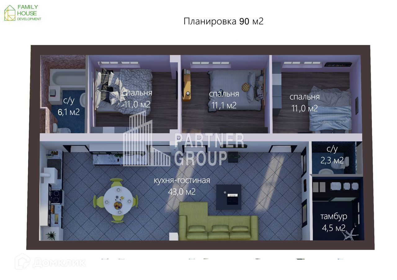 Общая площадь 90 м2