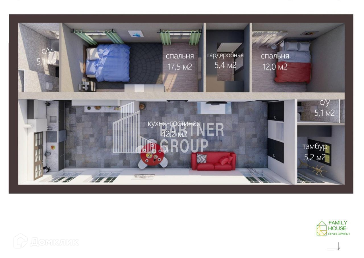 Эргономичная планировка дома позволяет максимально эффективно и функционально использовать всю площадь дома. * Просторная кухня-гостинная * 4 спальни * 2 С/у * возможность размещения на участке бассейна, террасы, беседки барбекю, 2-х парковочных мест, детской площадки.