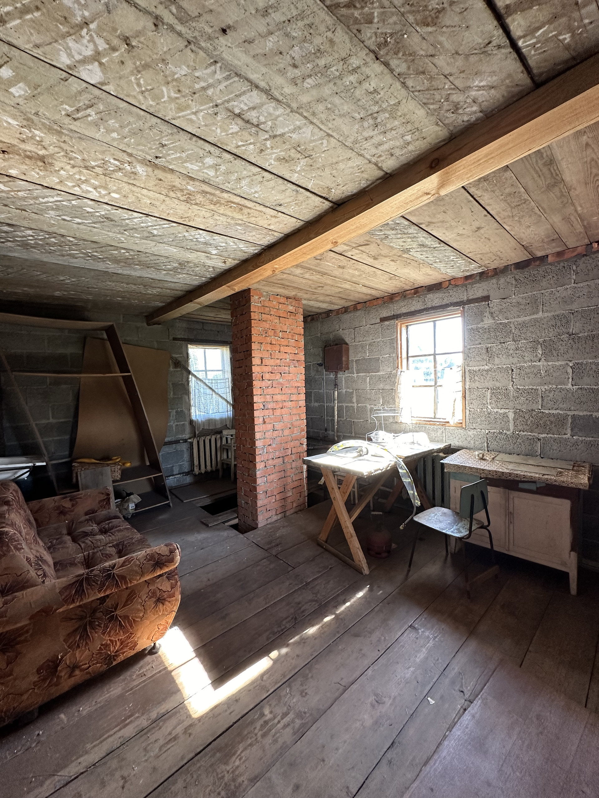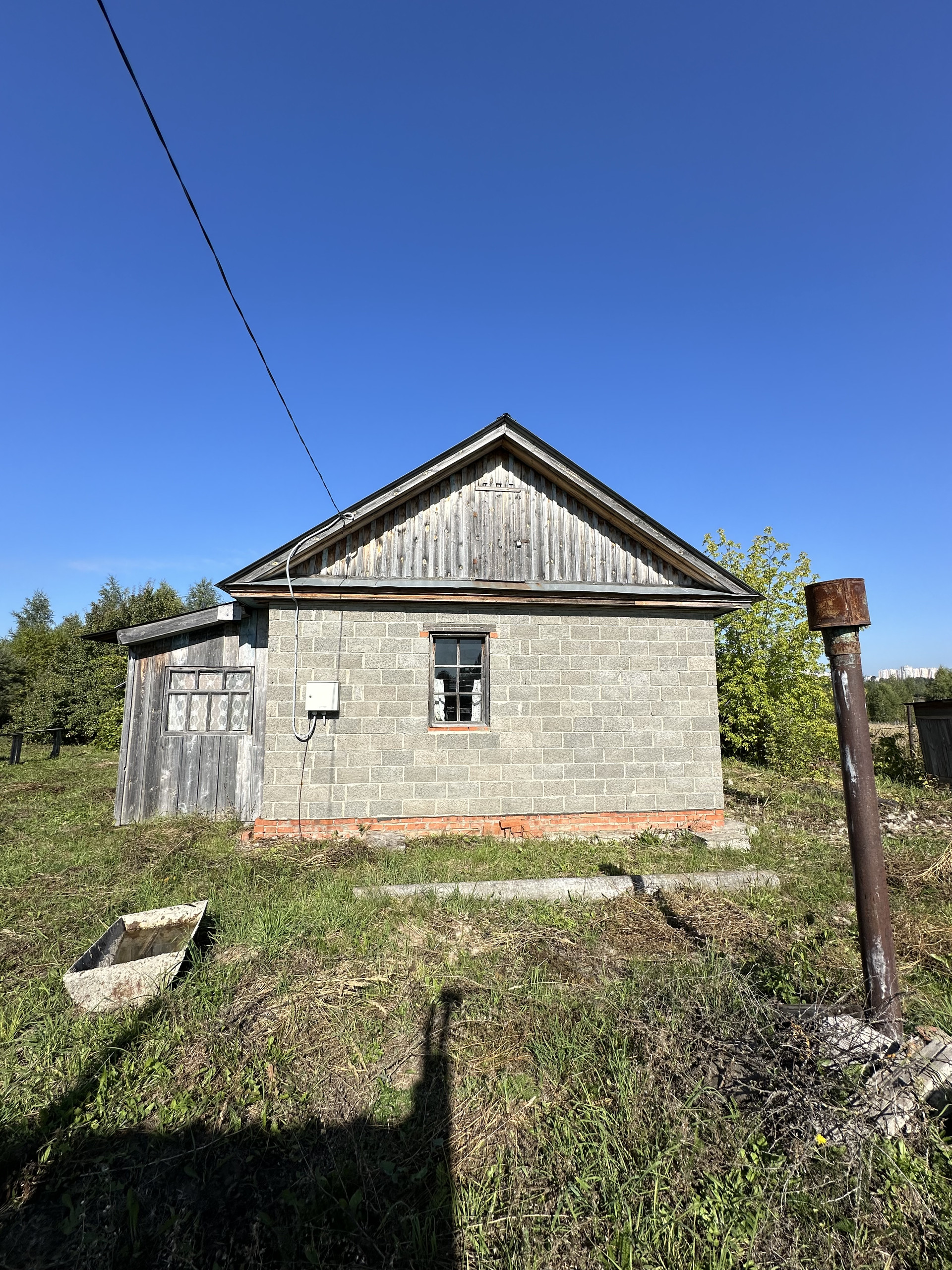 На участке стоит дом из нового деревянного сруба, на свайно-ленточном фундаменте. Пристрой из керамзитобетонных блоков. Площадь всего здания составляет 44.6 кв. метров. Кровля из профнастила. Проведена вода, электричество; отопление печное. Деревня газифицирована. Имеется большой сухой погреб площадью 15 кв. метров и глубиной 3 метра; баня; хоз. постройки.