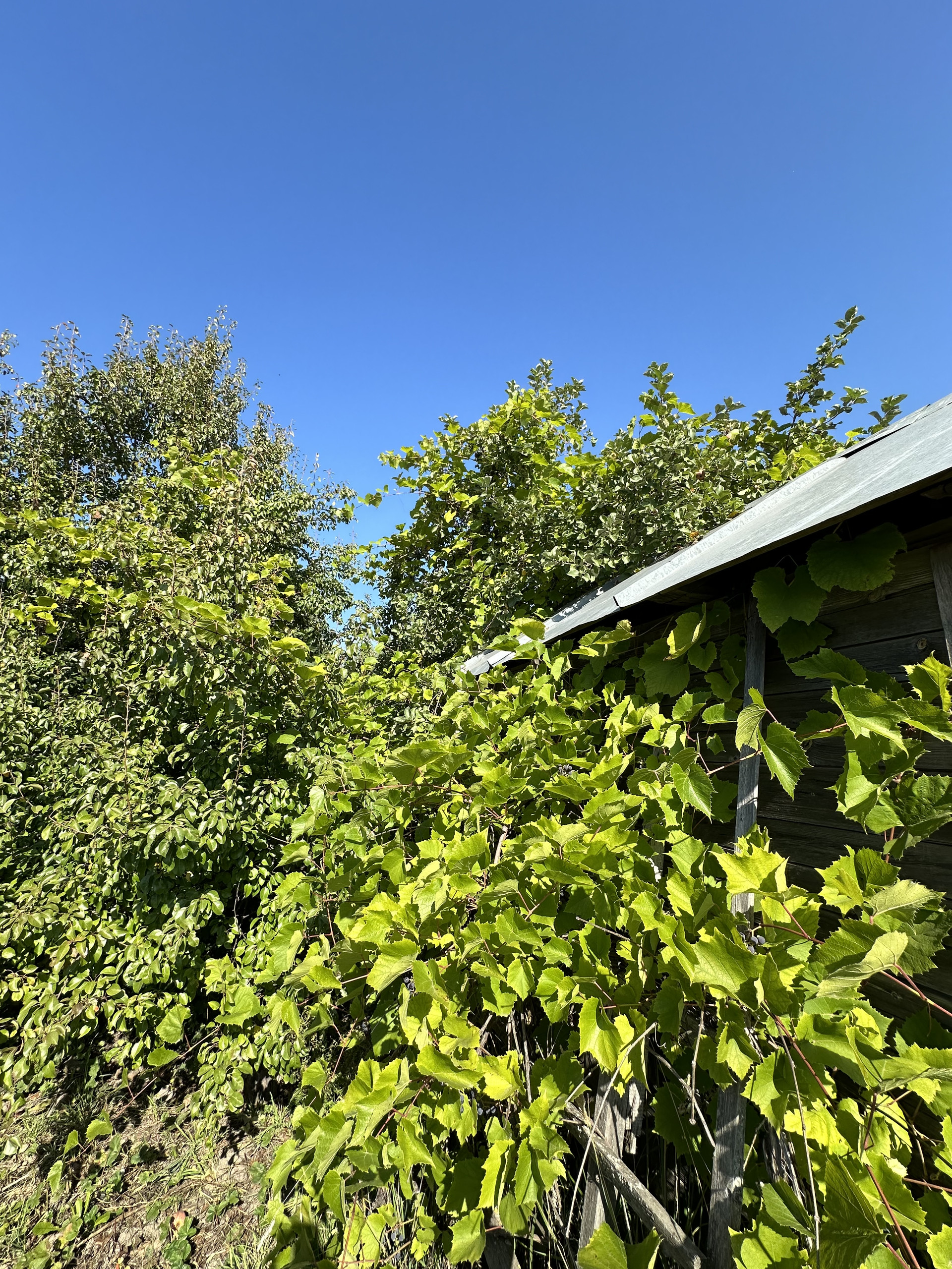 На участке растут плодоносящие деревья и кустарники: яблоки, виноград, облепиха и т.д.
