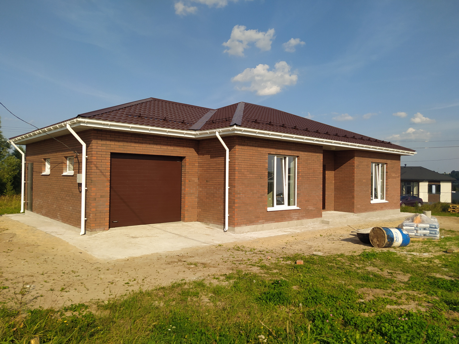 Дом полностью кирпичный, облицовочный кирпич с Московской области, забытовка 20 см. керамзитоблок.