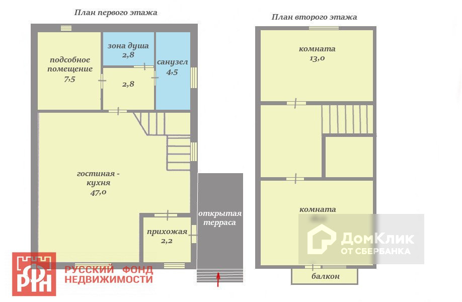 Легкая и удобная лестница ведет на второй этаж, где расположены две небольшие спальни 13 и 16 кв м, одна из которых(16 м) имеет балкон.