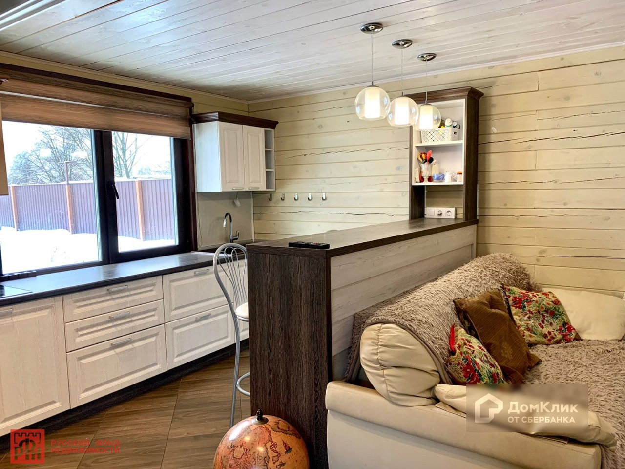 перед нами бревенчатый зимний дом, 6х9, площадью 83 кв м в два этажа.