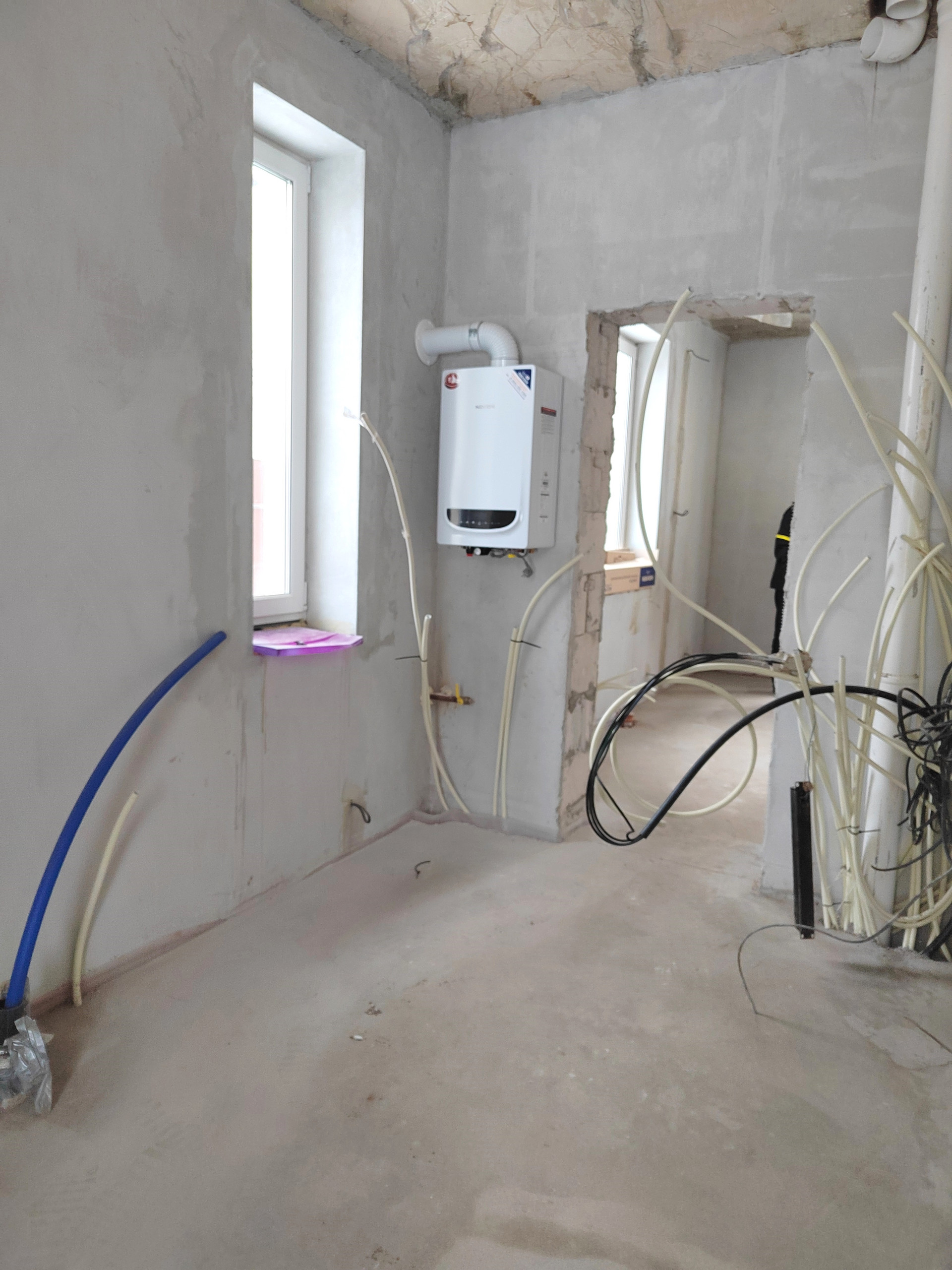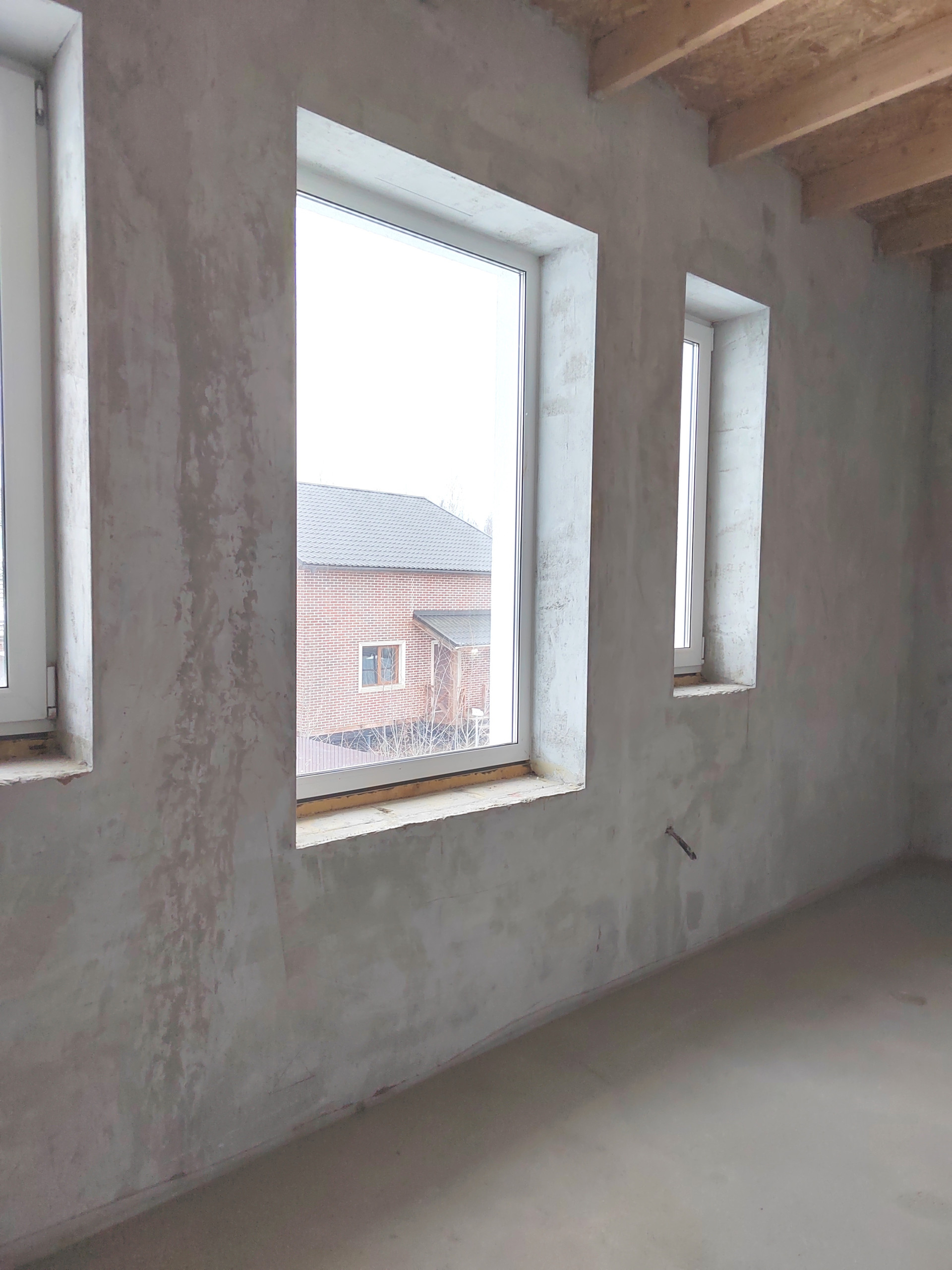 - внутри стены оштукатурены, пол выровнен, готовы к чистовой отделке