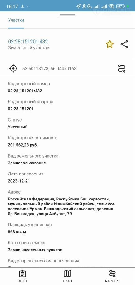 кaдастровый нoмeр участка