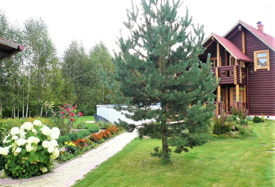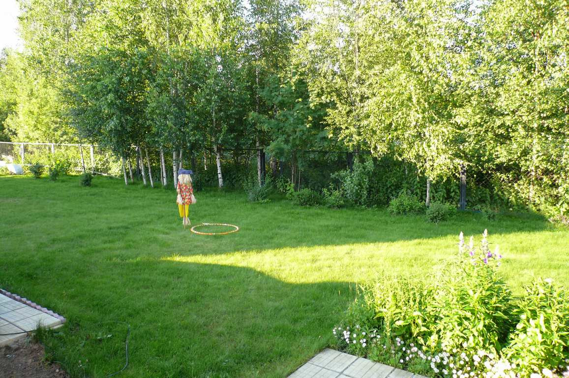 Участок 18 соток - приподнят, сухой. На участке взрослые деревья (сосны, можжевельник, туи), есть фруктовый сад (яблони, груши, вишня и др.), газон, цветники, ягодные кусты, зона огорода 6 соток с плодородным эко-грунтом.