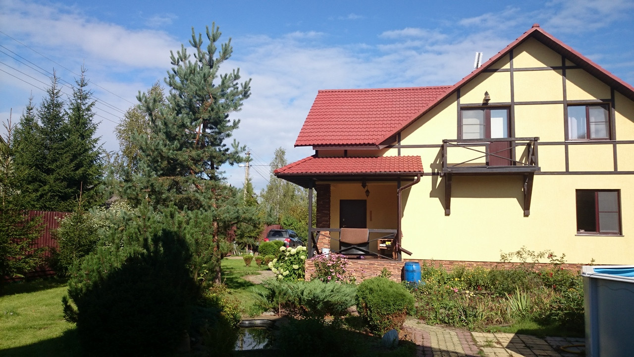 Конструктив основного дома выполнен из эко-пенобетонных блоков, утеплителя и защитного декоративного покрытия, толщина стен 40 см, полы- натуральное пробковое покрытие. Дом очень тёплый, быстро-прогреваемый, летом отлично держит прохладу. Функциональная планировка, квадратные комнаты, высокие потолки, много света, большие веранды, красивые зелёные виды. Дом полностью оснащён и меблирован - всё в отличном состоянии.