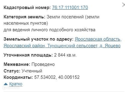 Земельный участок по адресу: Ярославская область, Ярославский район, Туношенский сельсовет, д. Ярцево