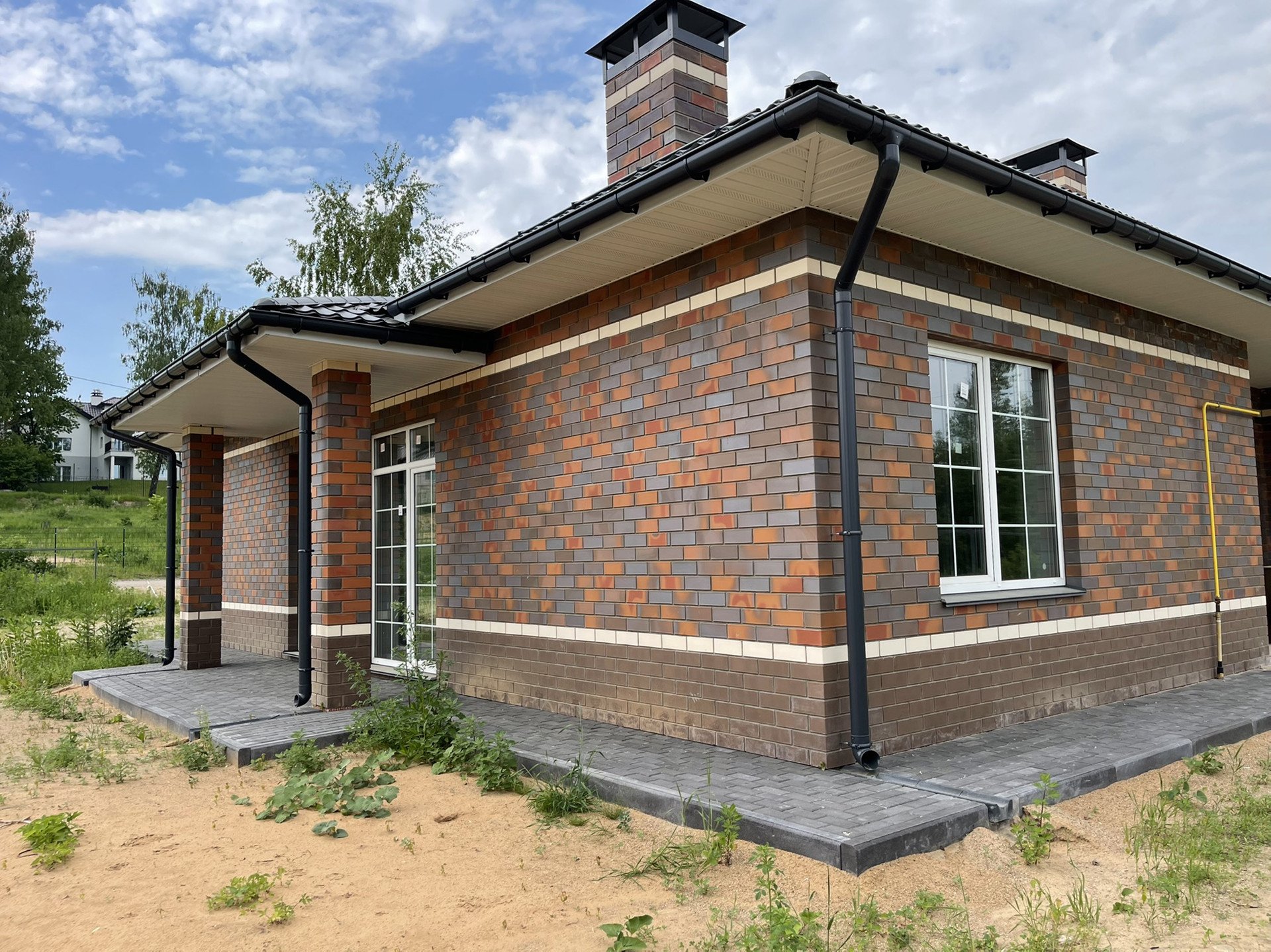 Дом сдан под ключ. Отопление водоснабжение электроснабжение канализация интернет подключение работает.Сделана черновая штукатурка, стяжка пола. Отмостка -брусчатка.