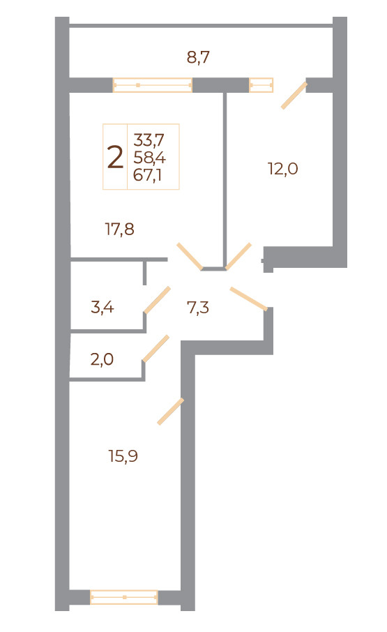 Общая площадь 67.1 м2