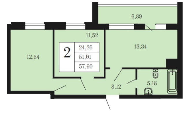 Общая площадь 57.9 м2