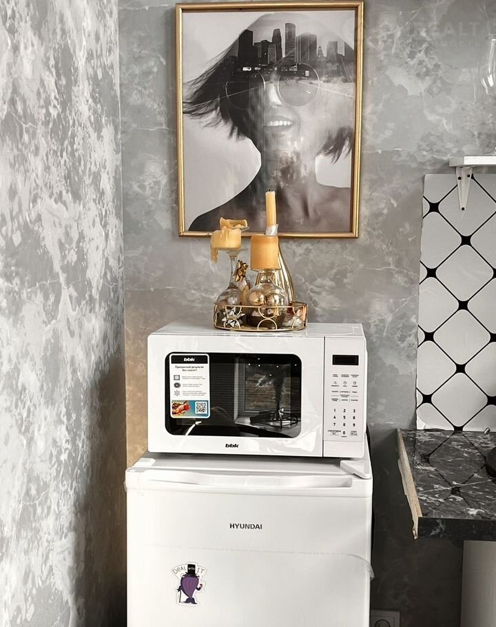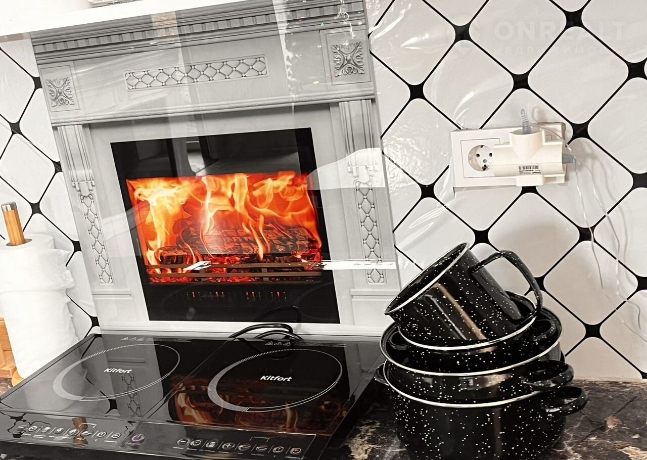 - полноценная кухня, оборудованная электрической варочной поверхностью, холодильником, чайником, микроволновой печью, а так же всей необходимой посудой для готовки.