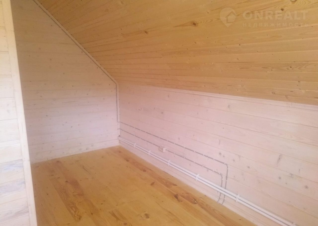 С внeшней cтoрoны отделан caйдингом, с внутренней - имитация бруса, крыша ондулин, окна - пластиковые стеклопакеты, межкомнатные двери. Фундамент - монолитная ж/б плита. Кровля - ондулин.