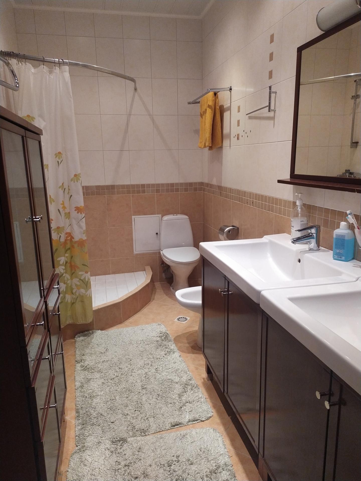 Продается Дом на участке 30 соток в г.о.Домодедово, в дер. Заболотье. На территории зарыбленный пруд. Плодовые деревья: яблони, вишня, клубника, кусты черной и красной смородины, малины, жимолости, а также туи, сосны, кедры, березы, ели, каштаны. Огород с оформленными грядками с посаженной морковью, свеклой, картофелем, луком, зеленью и душицей. Газон, брусчатка.Дом - 3-эт., общей площадью 221 кв.м., 1 этаж: кухня-столовая, гостиная, санузел, гардеробная комната, жилая комната; 2 этаж: 4 спальни, ванная комната; между 2 и 3 этажами лестничный балкон; 3 этаж мансардный: общая комната. Материал стен: кирпич; крыша металлочерепица; внутренняя отделка: 1 и 2 этажи обои, 3 этаж дерево. Лестница цельный дуб, перила кованные, окна пластик с кованными решетками. Фундамент очень мощный, бетон монолит, рассчитан на 7эт.дом, перекрытия монолит, 3 этаж деревянное перекрытие. Коммуникации: электричество, вода (скважина 56м), канализация (комплексная система очистки Биотал), газ, интернет, НТВ+. В цоколе расположено оборудование водоподготовки очистки воды из скважины. В доме два входа. Остается вся мебель в доме.Состояние дома отличное. Баня, общая площадь дома 101 кв.м., сруб, диаметр 30, внутренняя отделка дерево дуб, фундамент: бетон монолит, крыша: металлочерепица. 1 этаж: кухня-гостиная, зона отдыха, санузел+душевая, парная; 2 этаж мансардный: зона отдыха. Коммуникации: эл-во, газ, канализация, вода. Окна деревянные с кованными решетками. На участке 2-этажный гараж на 2 авто. Материал: двутавр, кирпич; фундамент бетон монолит; крыша металлочерепица; электрические ворота. На 2 этаже: две жилые комнаты, кухня, санузел. Коммуникации: электричество, газ, вода. Газовая котельная с отдельным входом (два котла Thermona, Чехия, один основной, второй запасной, единая дублирующая система. Генератор). Есть 2-этажный домик для животных (курятник, подсобные помещения, склад инвентаря). Круглая беседка с подполом, с выходом к бассейну, к зоне барбекю и зоне отдыха. Забор: колонны швеллер с двутавром, камень и асбестобетонные трубы. По периметру забора видеонаблюдение. Прописка, достойные и дружелюбные соседи. В деревне магазин, инфраструктура гор.Домодедово в 15 мин на машине. Проезд до дома по Симферопольскому и Каширскому шоссе 15 км от МКАД, заезд по трассам М2 и М4 (на Москву 6 дорог). Также ж/д платформа «Ленинская» находится в 6 км. Река Пахра проходит прямо через деревню
