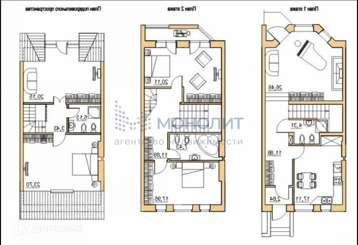 Три уровня, 1 и 2 этажи площадью 129 кв.м, потолки 3-3,6 метров, мансарда, где можно запланировать спокойную рабочую зону, гардеробные, хранилища, площадью 54 кв.м. Всего 180 кв.м
