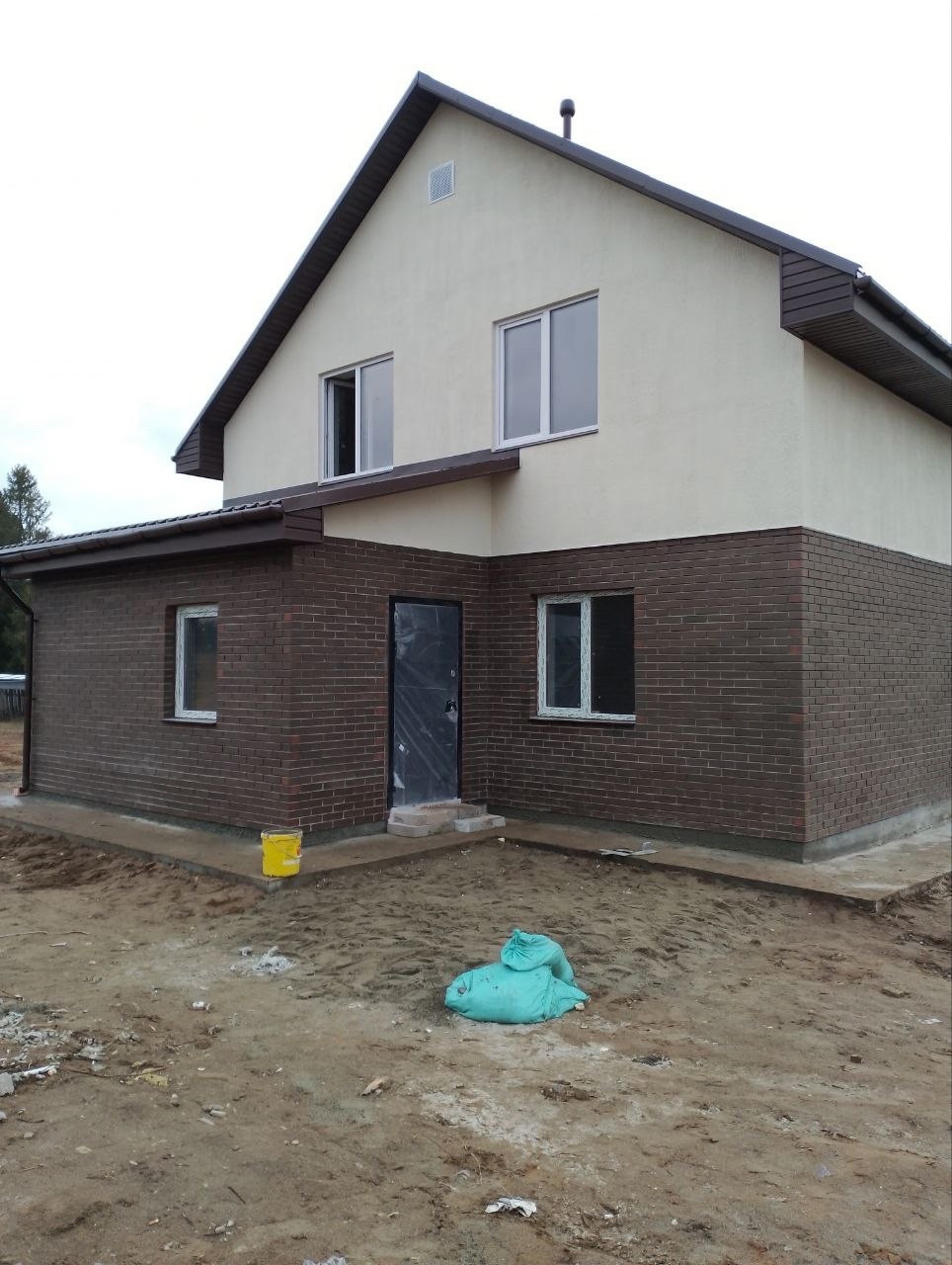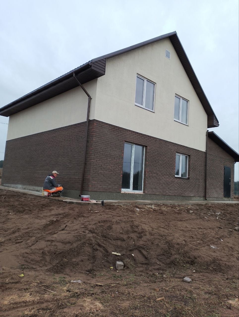 На фото пример дома комбинированного кирпич "Баварская кладка"+штукатурка. Этот дом построен уже по заказу клиента . Дом 130кв.м +гараж 24кв.м и участок 10сот.