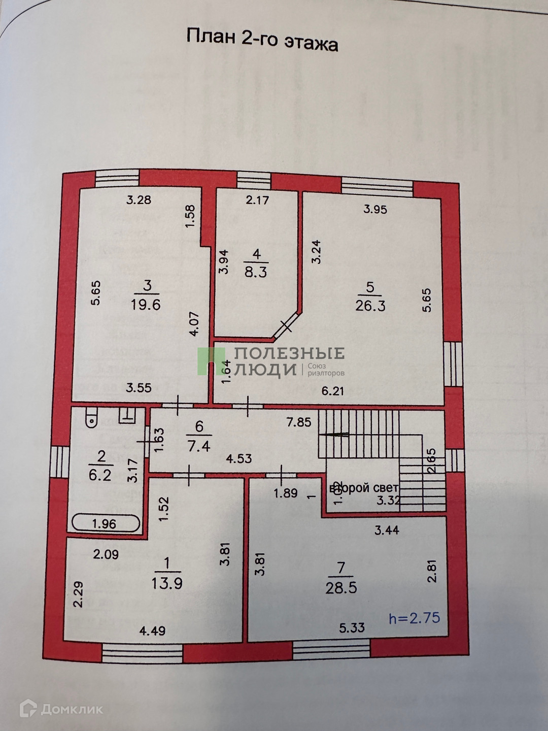 Высота потолков 2,75м (в чистовой)