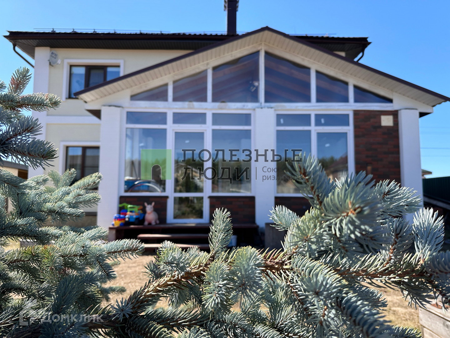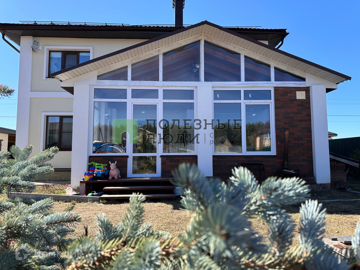 Окна: пластиковое остекление, тройные стеклопакеты хорошего качества. Большая площадь остекления, панорамные двери, веранда, делают внутреннее пространство дома светлым и просторным.
