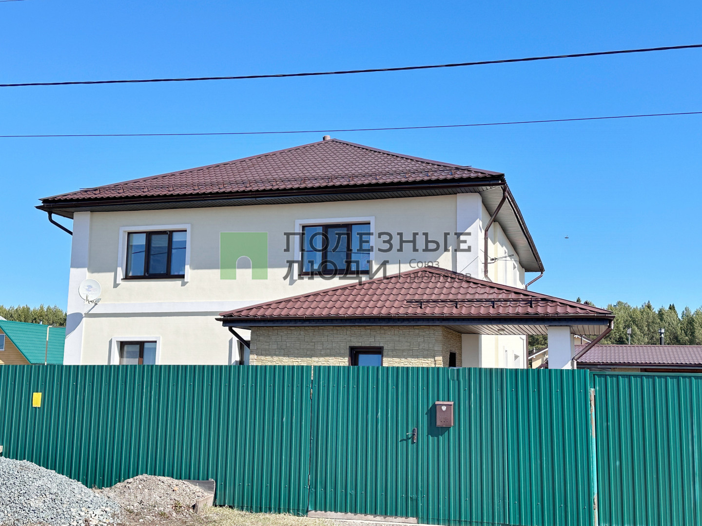 Земельный участок 15 соток, огорожен металлическими ограждениями из профнастила. Вся площадь территории вокруг дома, выложена брусчаткой. Въезд на территорию участка через большие автоматические откатные ворота. Просторный внутренний двор с большим парковочным пространством –можно разместить 2 автомобиля под крышей. Удобный подъезд к дому по широкой дороге.