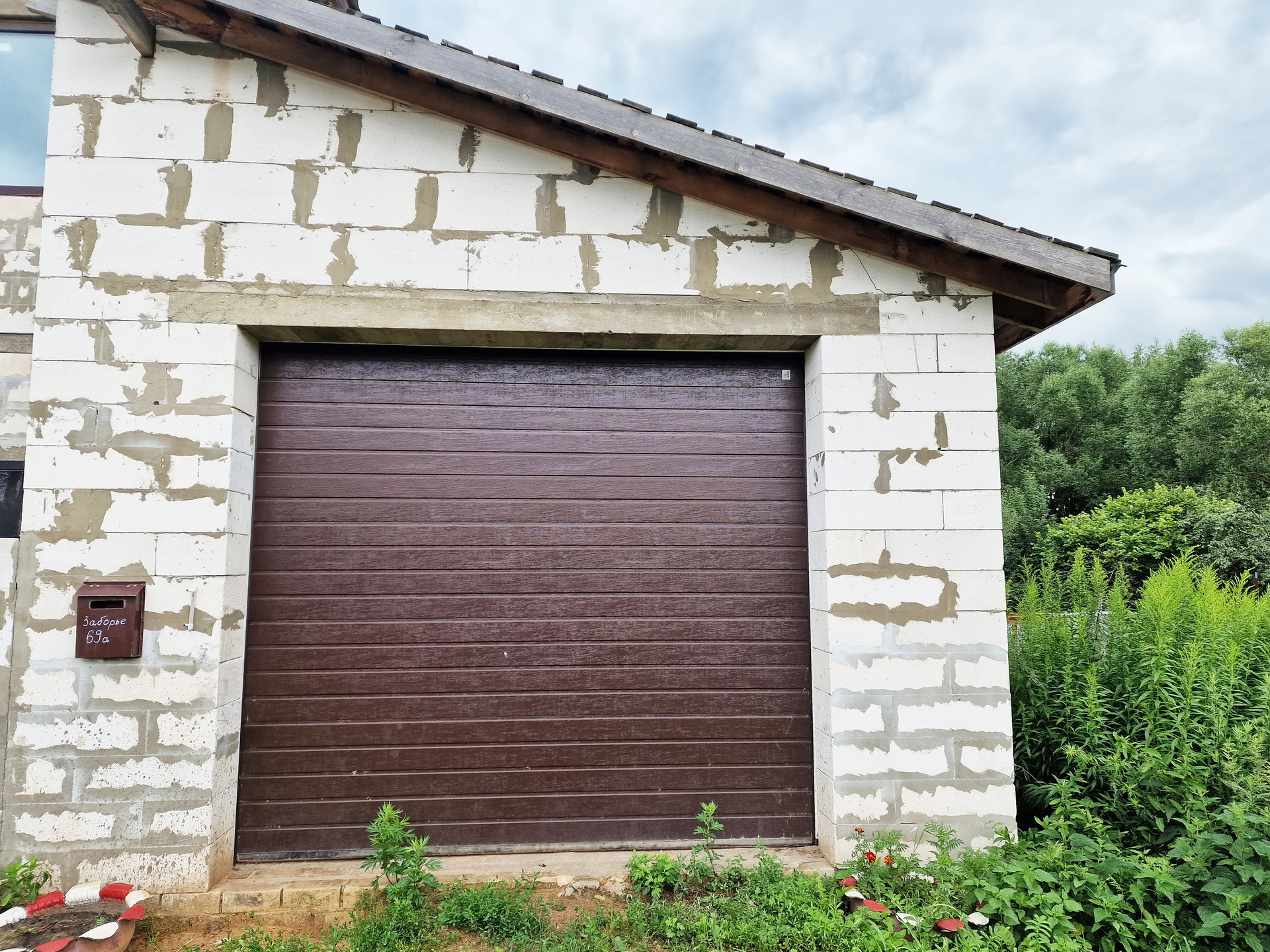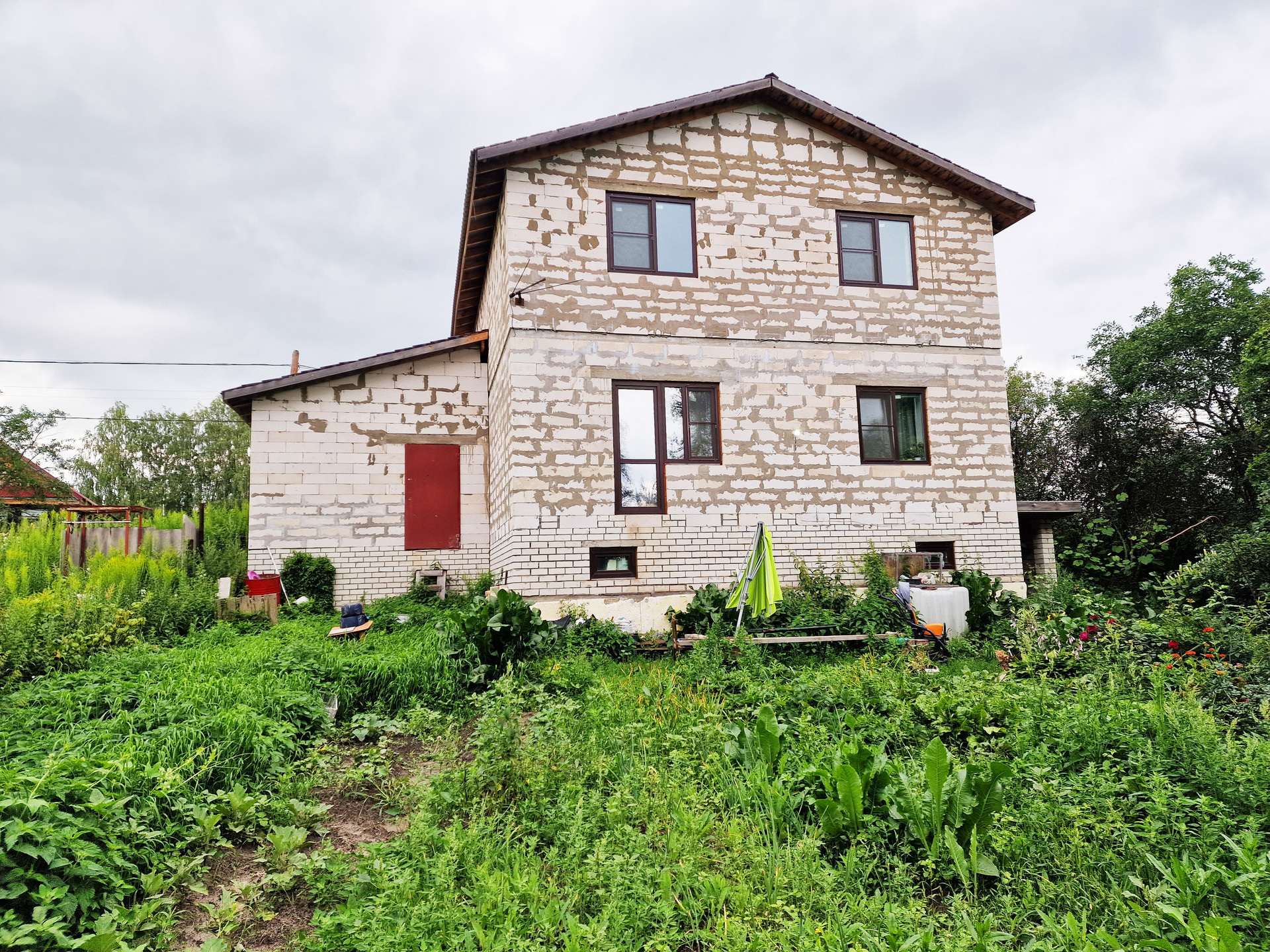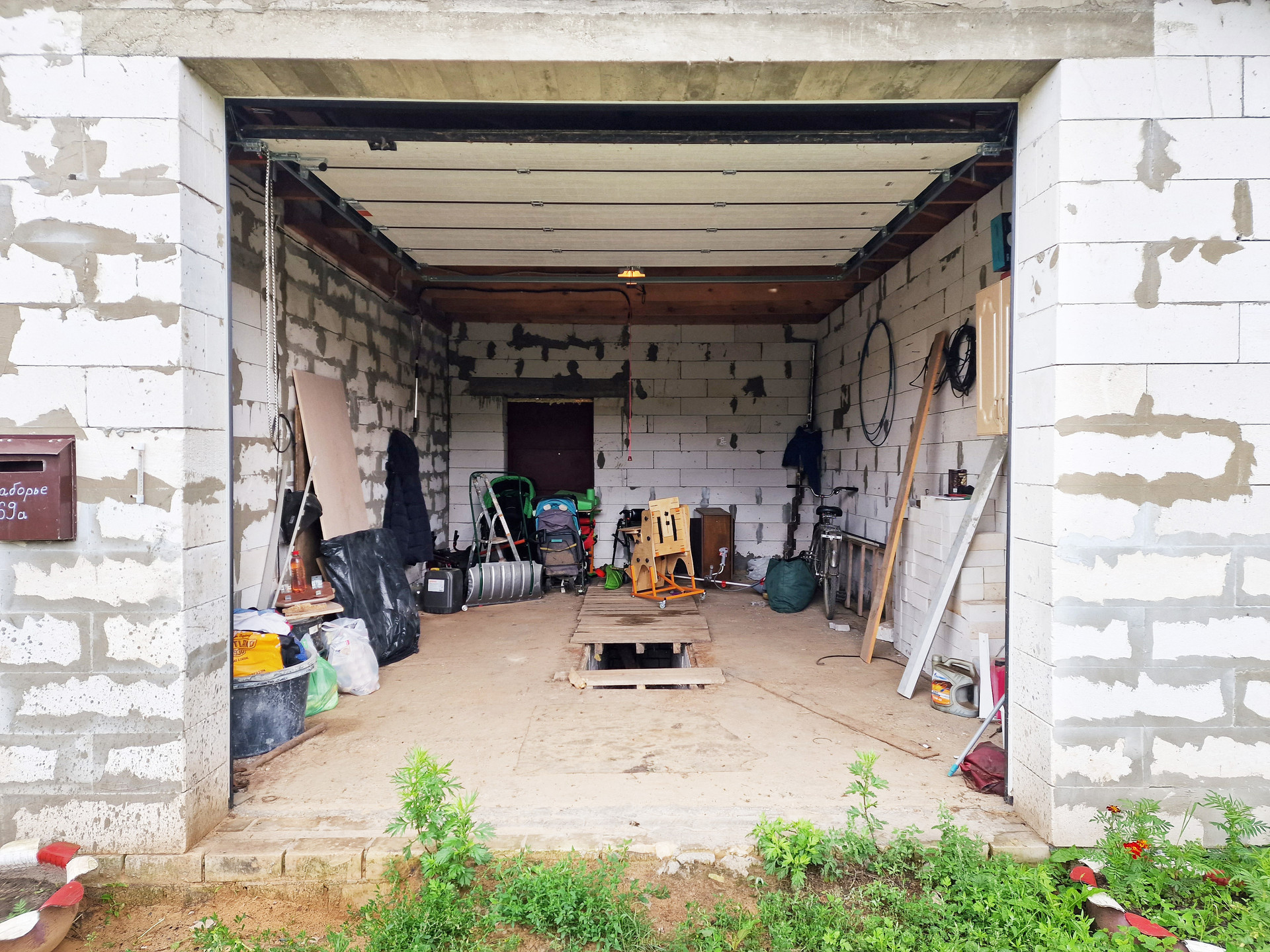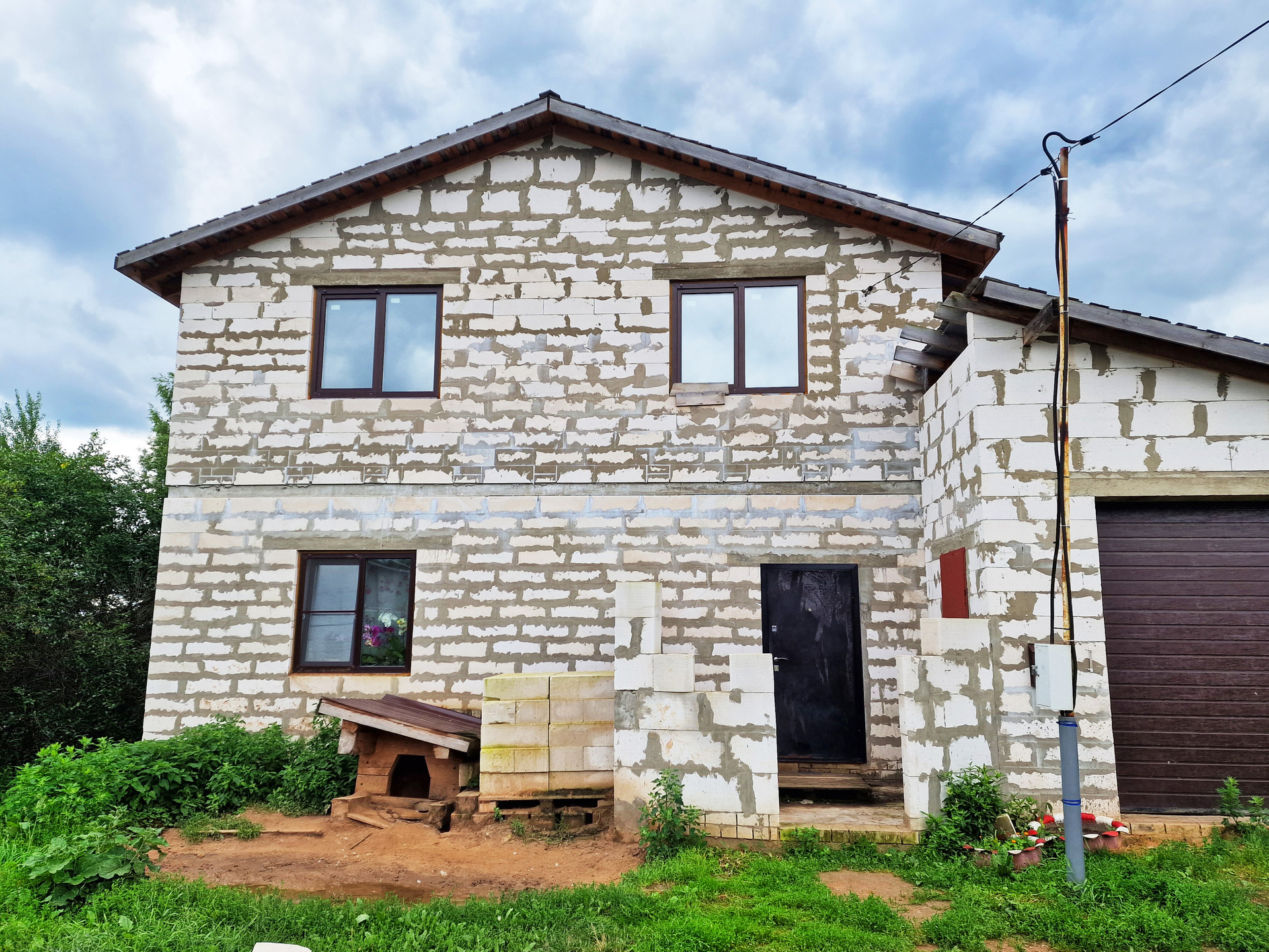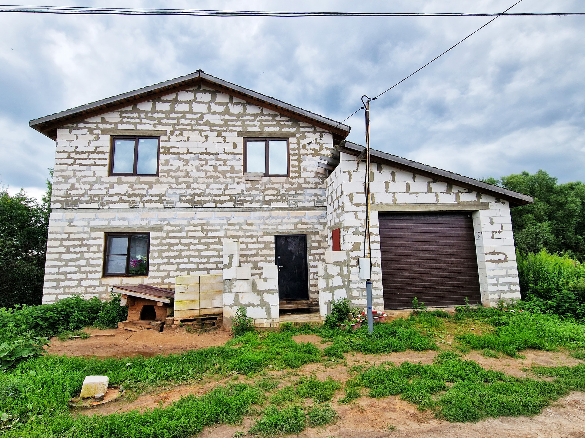 К дому пристроен большой просторный гараж "с ямой" (есть на фото), также начато строительство крыльца.