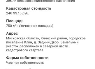 Продам участок, 7.5 сот., деревня Задний Двор, 16