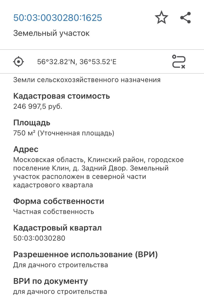 Кадастровый номер участка 50:03:0030280:1625