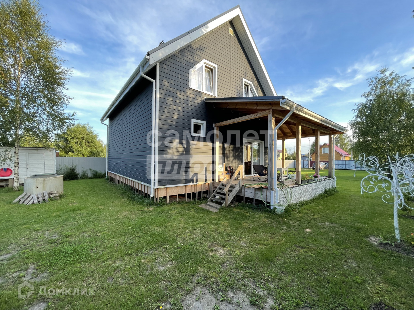 В доме 5 комнат, второй свет, большая кухня-гостинная, открытая летняя терраса.