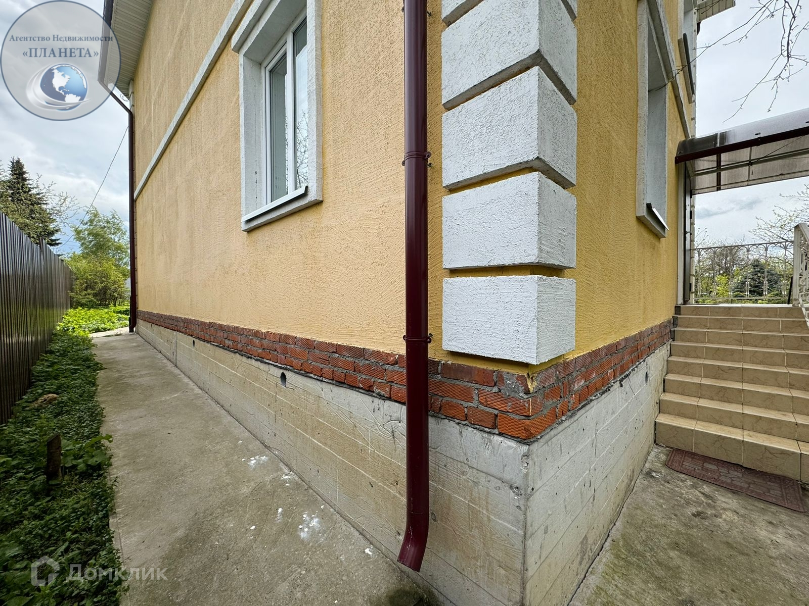 Отмостка дома по всему периметру бетонная - толщиной в 15 см и шириной 80см.
