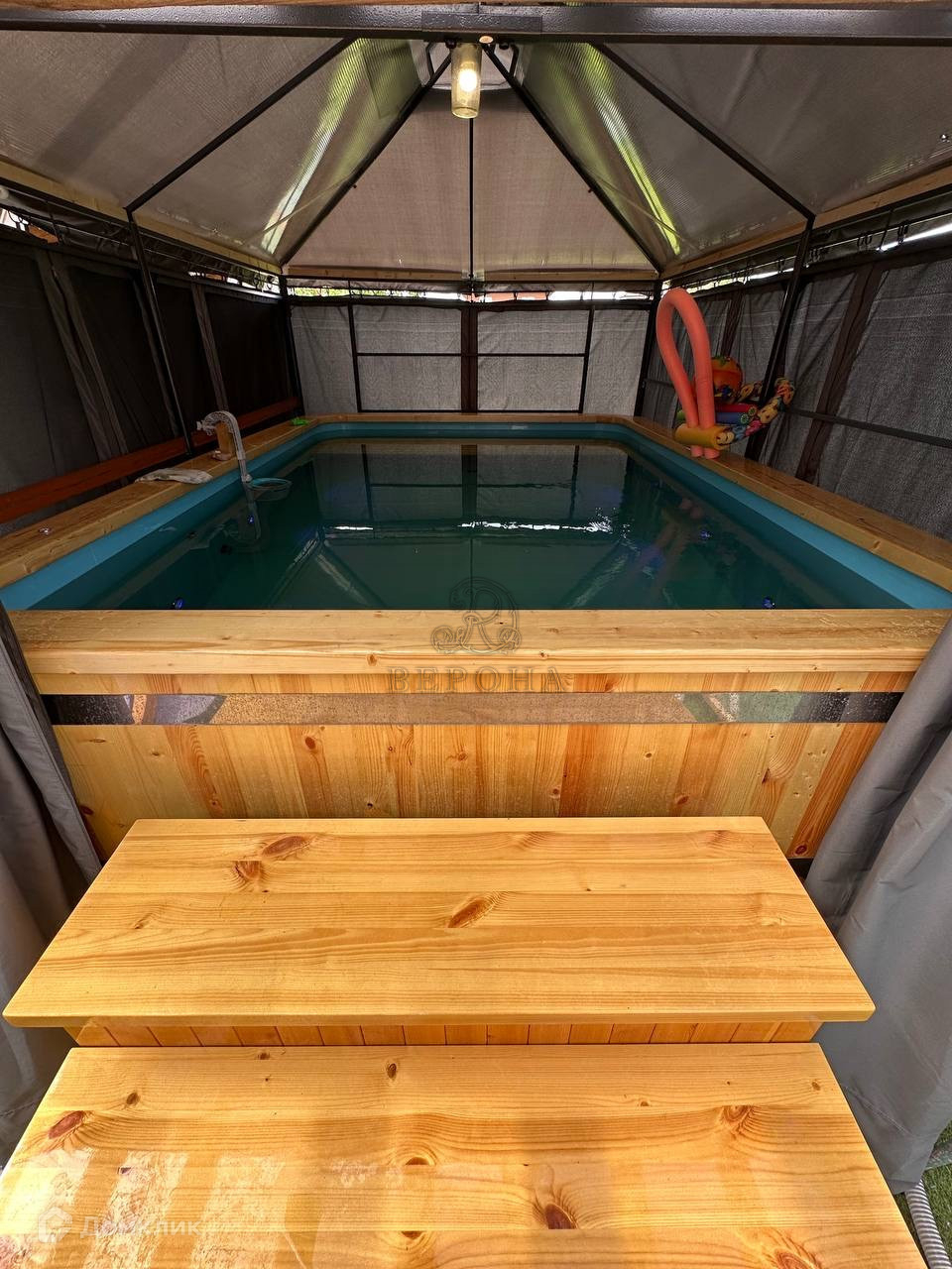 крытый бассейн и качели;