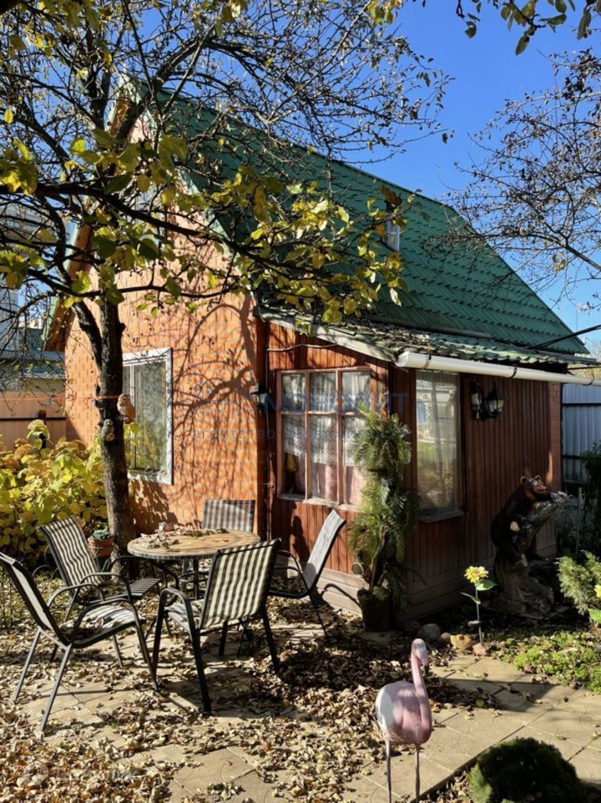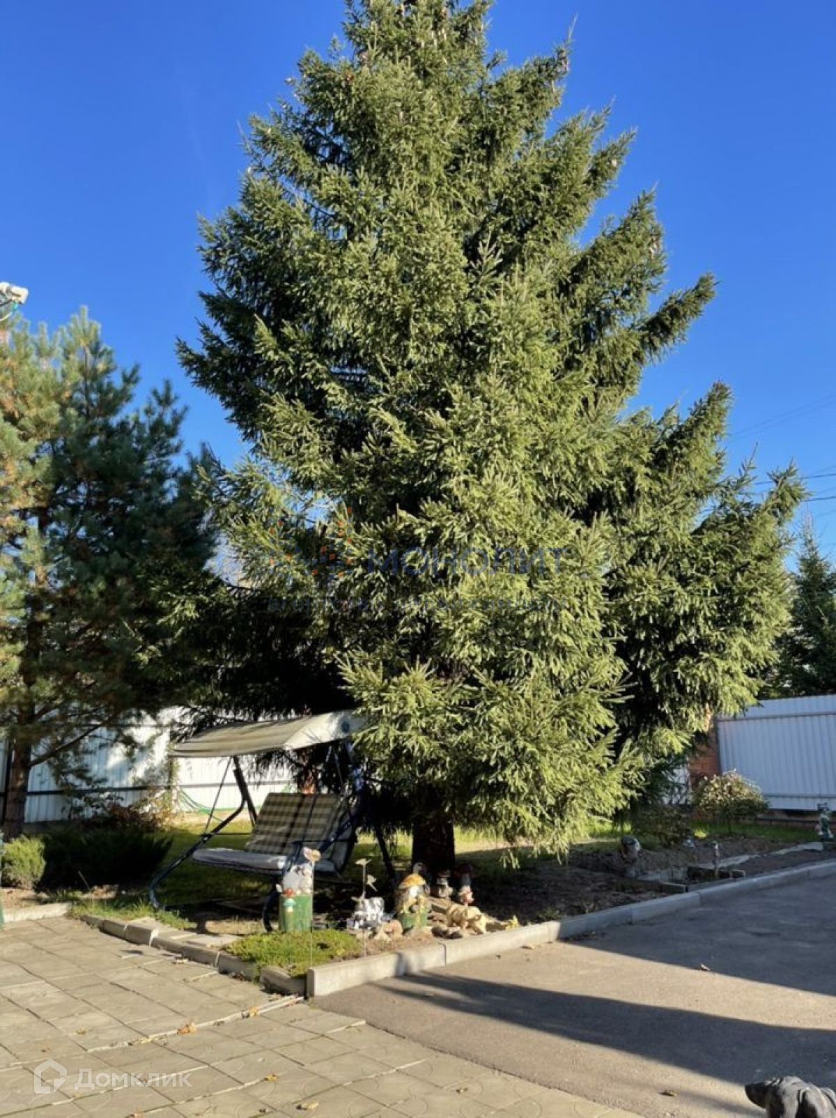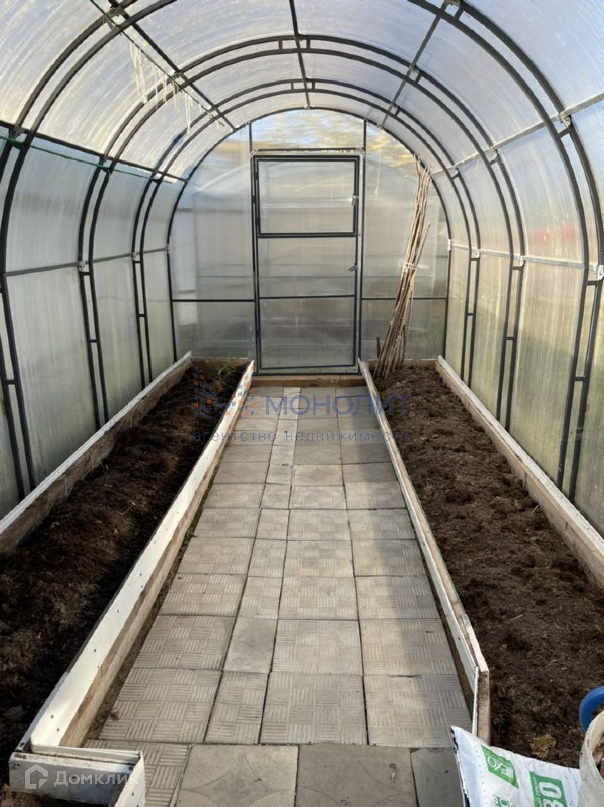 На участке растут плодоносные деревья, много цветов, туи, ели, сосны, малина, 2 парника, бытовка с инструментами.