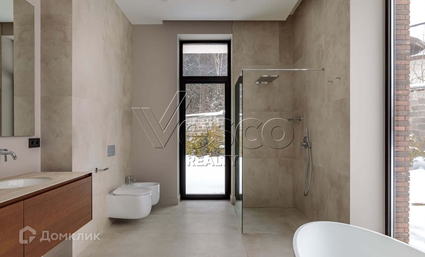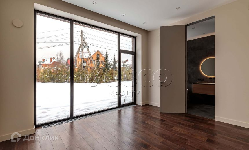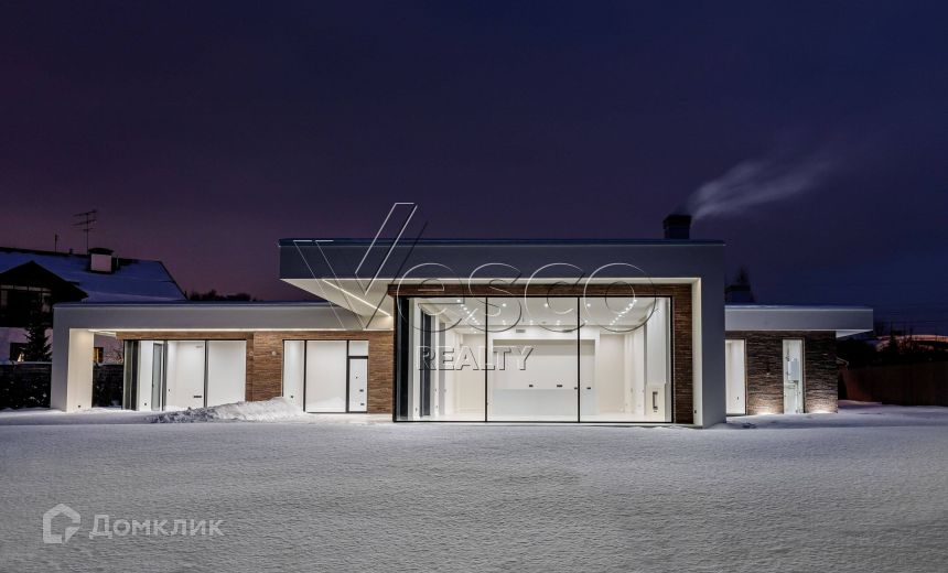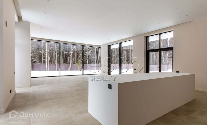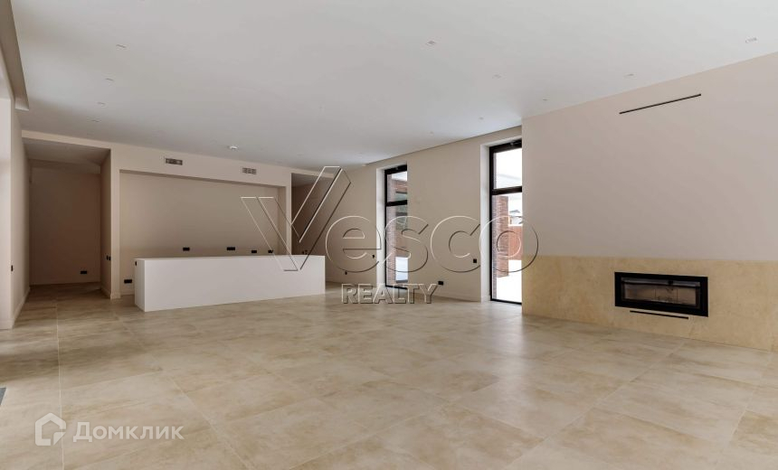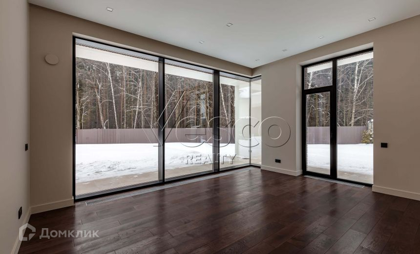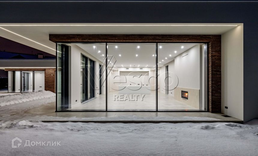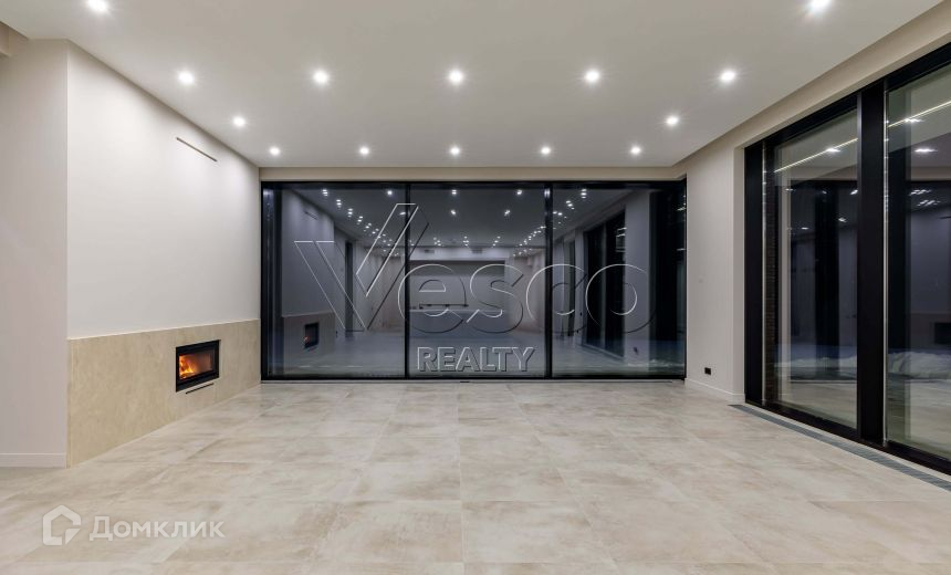 В доме выполнена качественная и дорогая отделка в современном стиле, установлены алюминиевые панорамные окна формата джамбо высотой 3,5 метра, в гостиной настоящий дровяной камин облицованный итальянским мрамором.