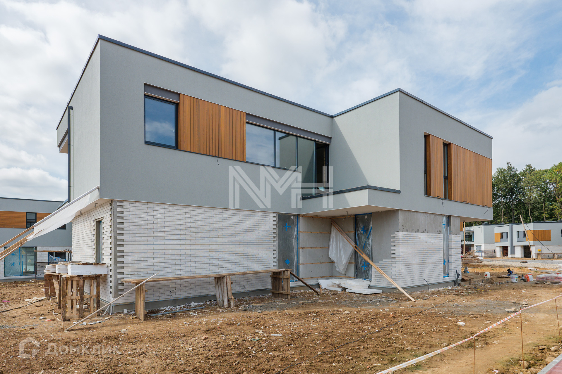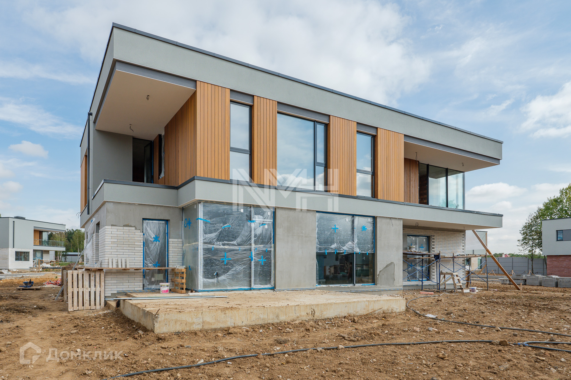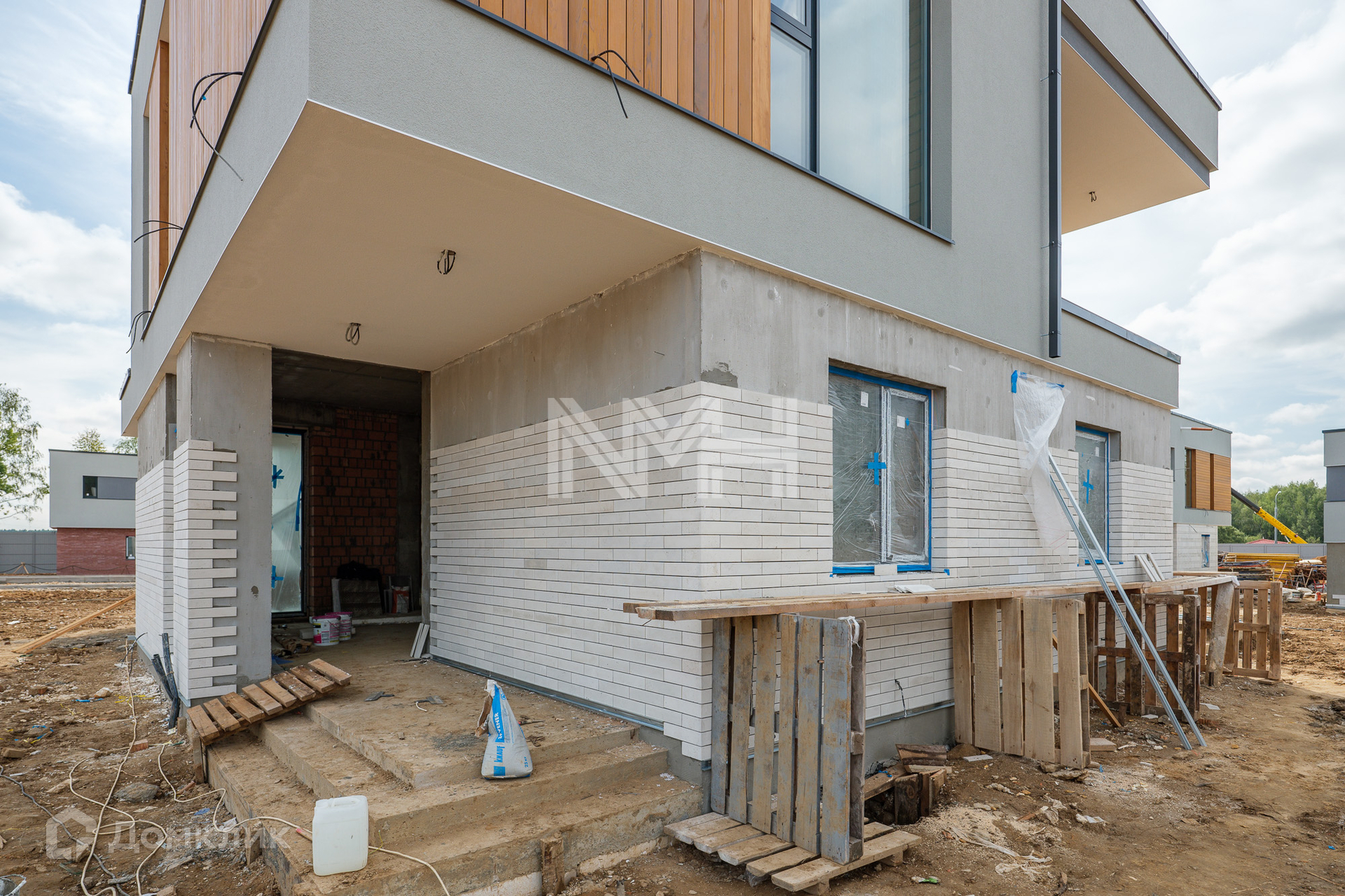 Конструктив: внешние стены – кирпич, монолит, фасад – фибробетонные панели, планкен термоясень, декоративная штукатурка, кровля – балластная, неэксплуатируемая, лестница и перекрытия – монолитные, окна – аллюминивые 3-х камерные стеклопакеты Schuco, балконы и террасы – керамогранит, крыльцо - гранит. Входная дверь и ворота Hormann.
