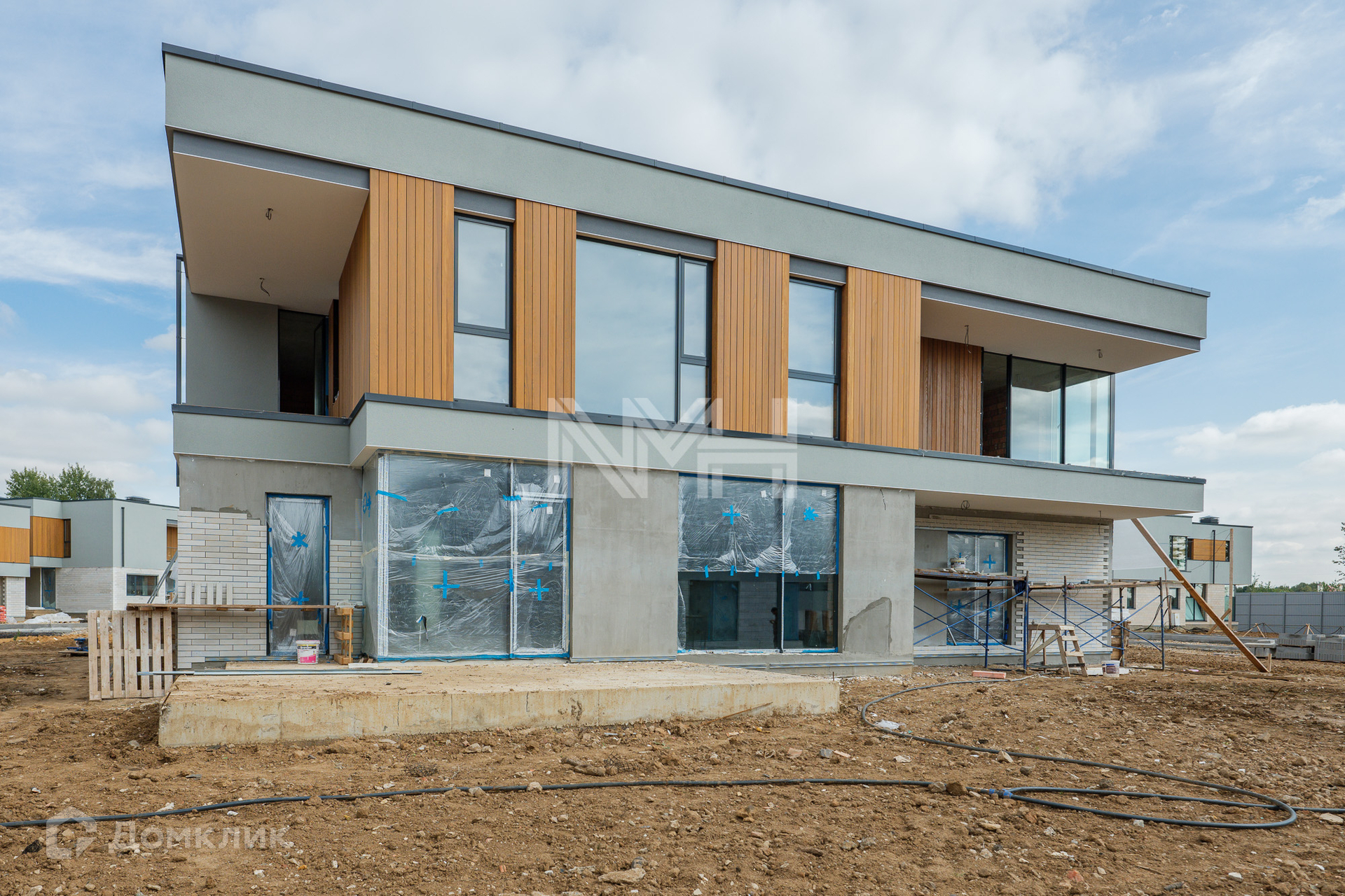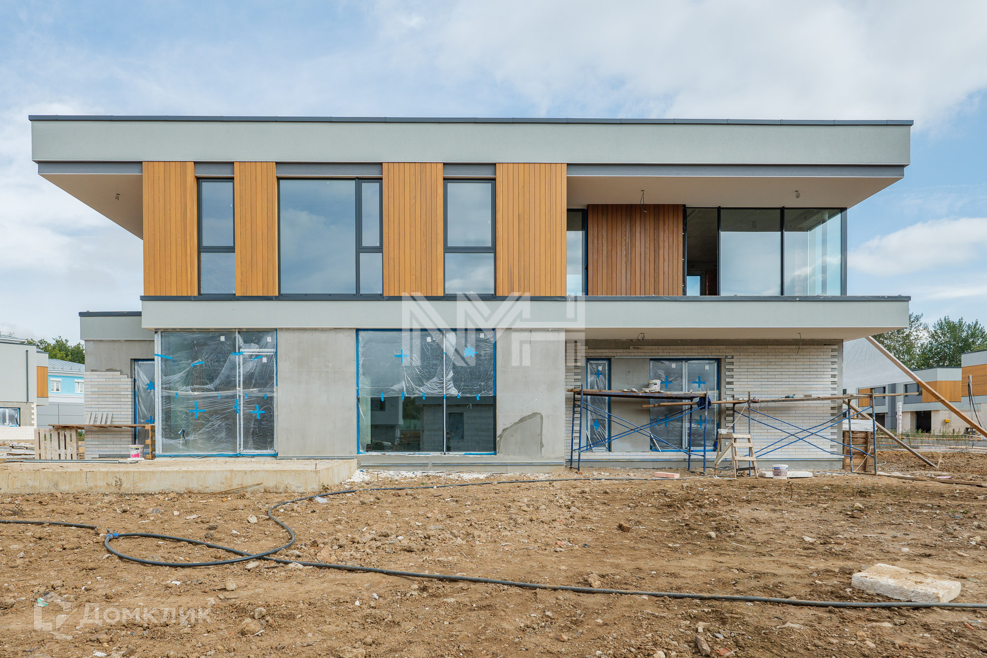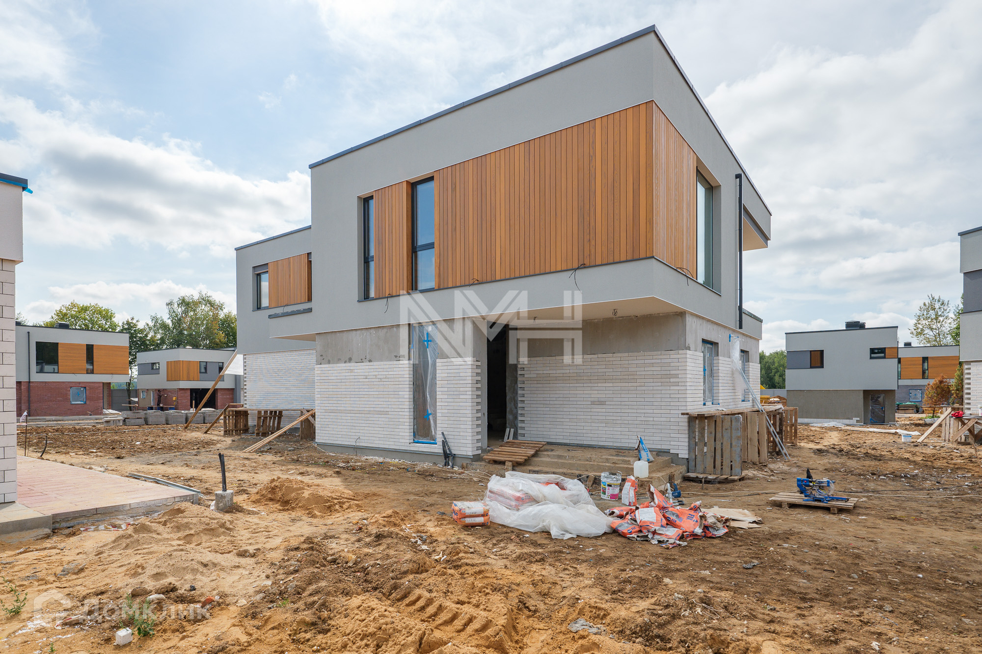 Конструктив: внешние стены – кирпич, монолит, фасад – фибробетонные панели, планкен термоясень, декоративная штукатурка, кровля – балластная, неэксплуатируемая, лестница и перекрытия – монолитные, окна – аллюминивые 3-х камерные стеклопакеты Schuco, балконы и террасы – керамогранит, крыльцо - гранит. Входная дверь и ворота Hormann.