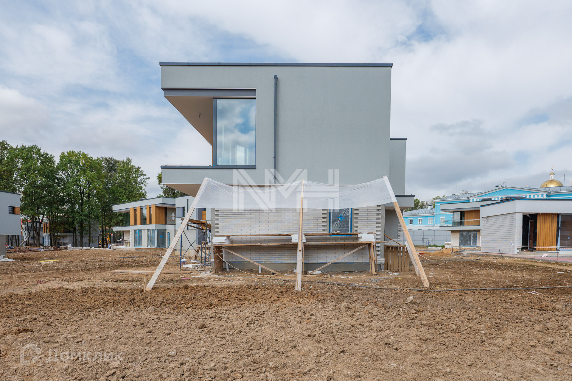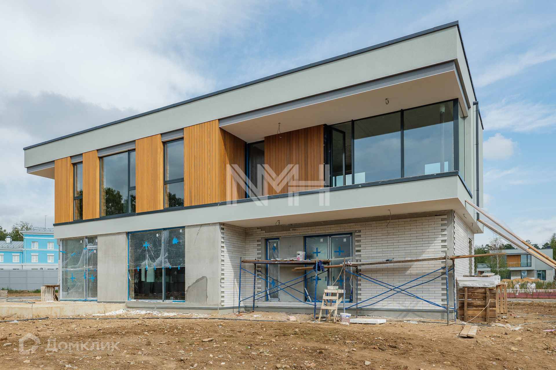 Коттедж в современном стиле 356,7 кв. м (проект Р) без отделки на участке 13,98 сот. в камерном поселке «Мирас», в 19 км от МКАД по Минскому шоссе.