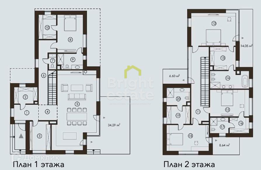 2 этаж: холл, 3 спальни с гардеробными и с/у.