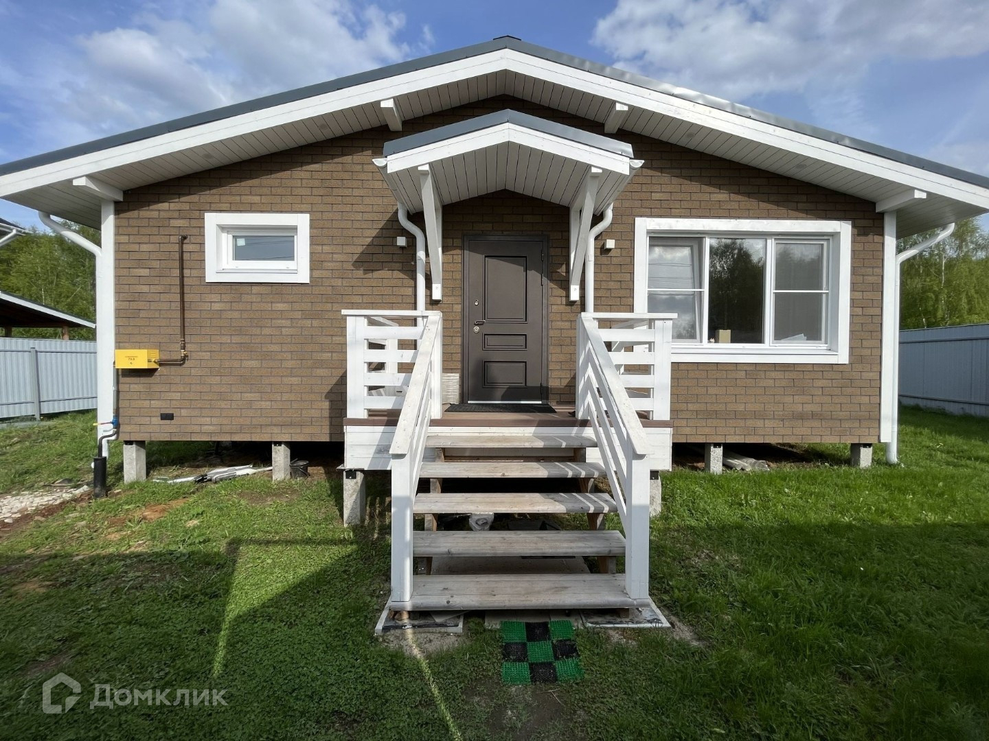Кровля - гибкая черепица, внешняя отделка фасадов дома так же выполнена из гибкой черепицы, очень хорошего качества. Имеется наружная подсветка дома, опоры крыльца и террасы выполнены из клееного бруса.