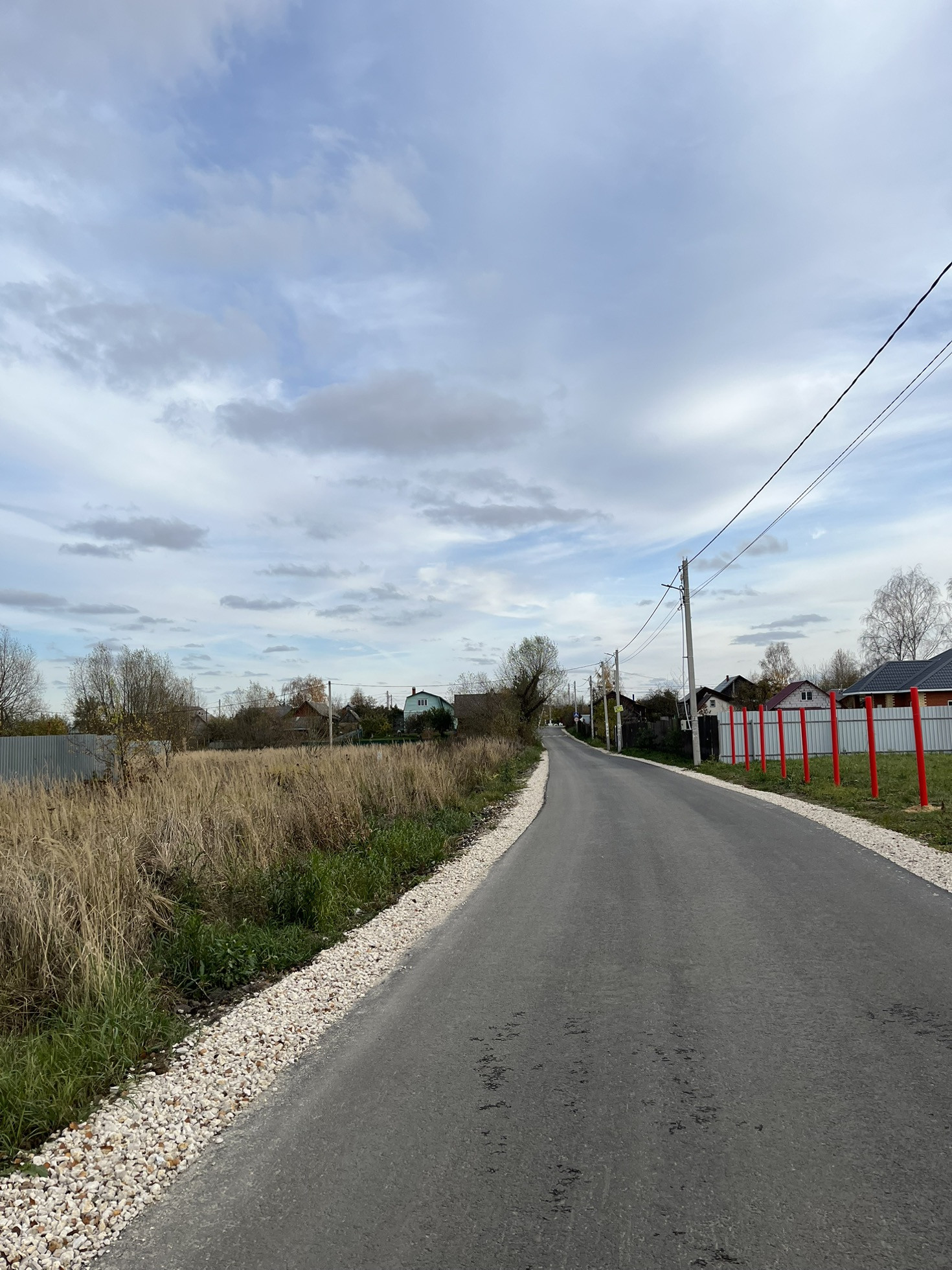 Широкая асфальтированная дорога, удобный подъезд к участку. Рядом пруд.