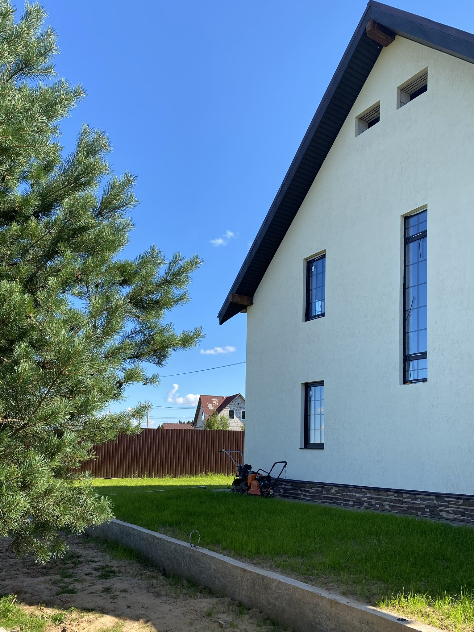 Дом находится в новейшей части деревни с современными новыми коттеджами и просторными улицами, соседи проживают круглогодично.