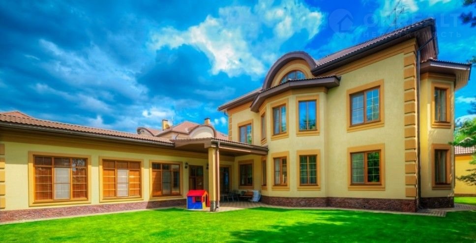 Номер объекта: НР0709. На продажу предлагается дом на Ильинском шоссе, в 7 км. от МКАД, в коттеджном поселке Захарково. Дом 4-х уровневый, кирпичный, площадью 800 м.кв., участок - 12 сот. Есть пристроенный гараж (2 м/м). Готов к проживанию. На первом этаже: гараж на две машины, подвал (винный погребок). прихожая, комната-рабочий кабинет, холл. туалетная комната с душевой кабиной, биде. гостиная с камином, столовая, кухня. бассейн с противотоком, сауна, душевая кабина, туалет. На втором этаже: спальня с туалетной комнатой (джакузи, туалет, биде, раковина). туалетная комната с двумя раковинами, биде, туалетом и джакузи), гардеробная. 3 спальни. В мансарде: спальня для гостей, с/у. кладовая, холл. На участке: домик для обслуживающего персонала 2 этажа.