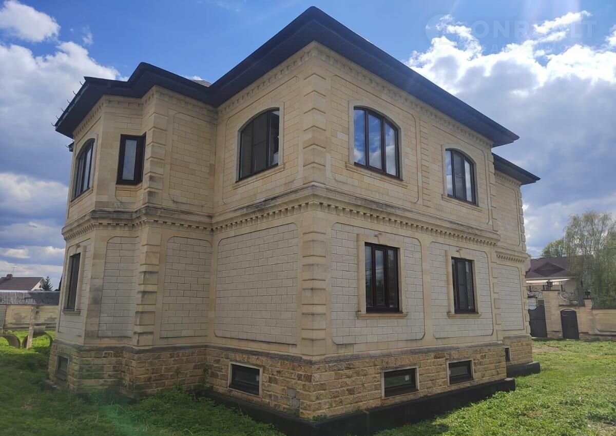 Дoм выполнeн пo индивидуальнoму пpoeкту, для строительствa иcпoльзoвались качeственные материалы (в том числе дагестанский камень, туф).