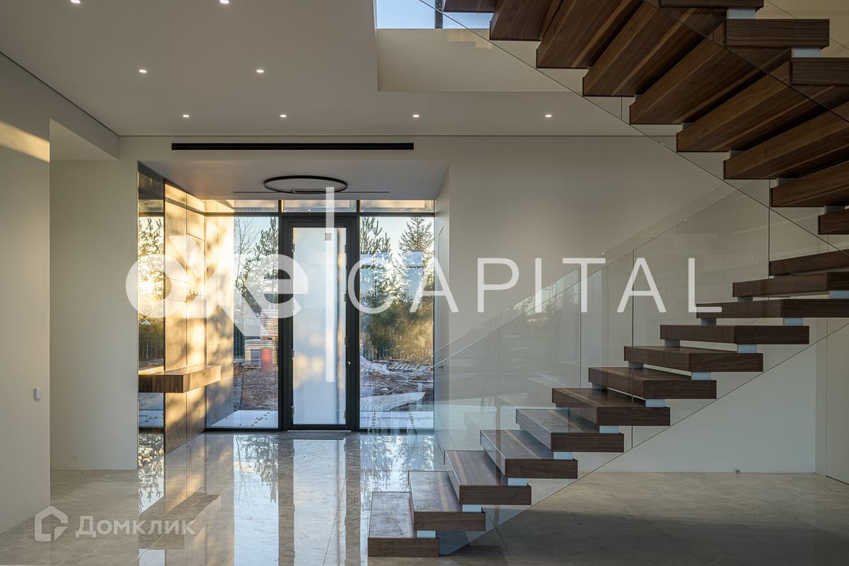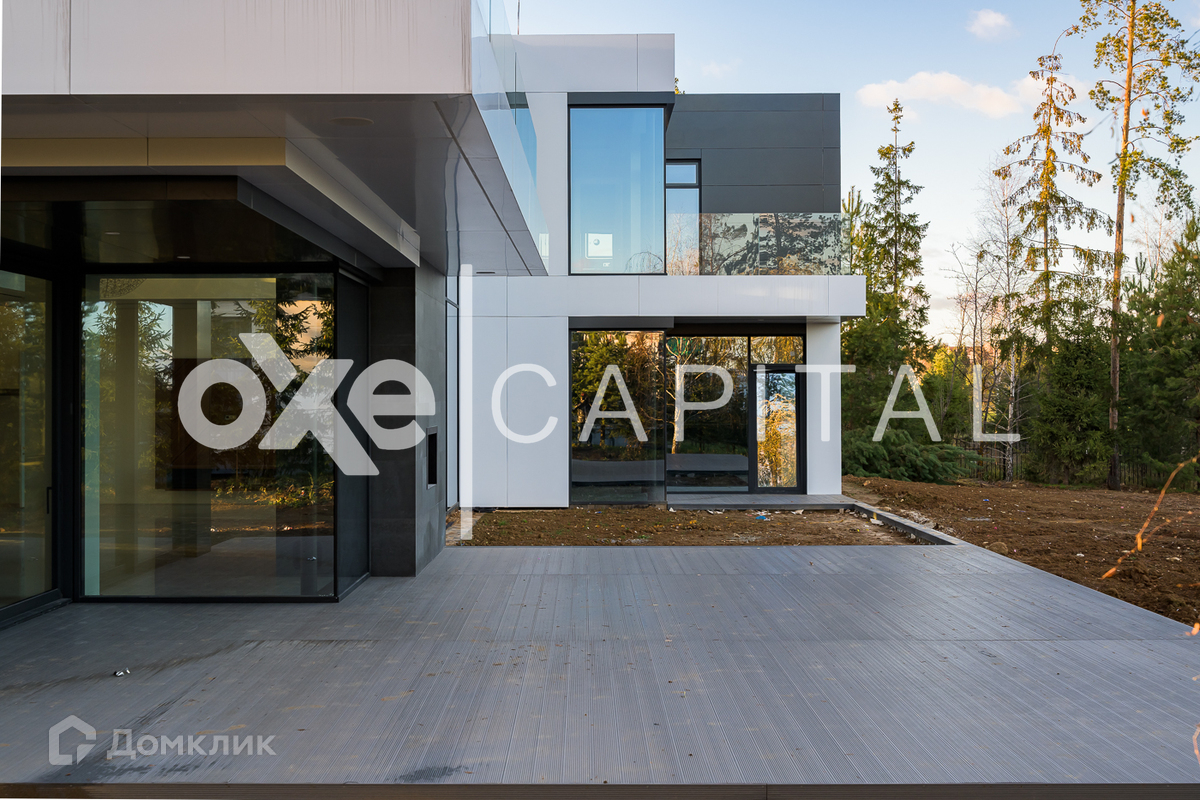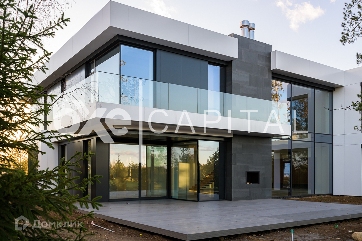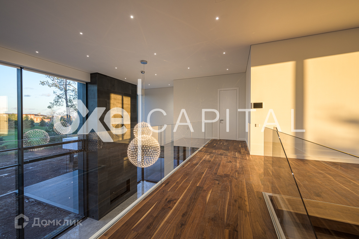 Великолепный, современный коттедж по индивидуальному проекту построен в 2 этажа. Высокие потолки и огромная площадь остекления. Выполнена дорогая дизайнерская отделка. Прекрасная планировка.  Второй свет в гостиной, завораживающий вид на 2 гектара. В контуре дома расположен гараж на 4 м/м с квартирой для персонала.