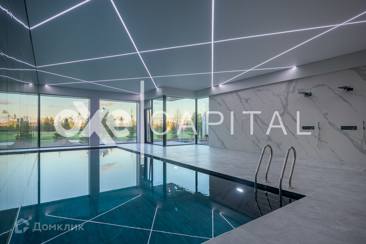 Участок 32 сотки с выходом и видом на гольф поле с живописным ландшафтом.  1 этаж: прихожая, гардеробная, гостевой с/у, гостиная, каминная с выходом на террасу, кухня, столовая, спальня с с/у, кладовая, SPA- зона: бассейн 11 х 4м, хамам, сауна, душевая, с/у, раздевалка; 2 этаж: 5 спален с индивидуальными ванными и гардеробными комнатами, кабинет; Гараж: в контуре дома 4 м/м.