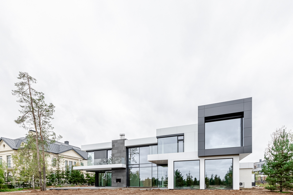 ID 11413 Дом под ключ, 950 кв м в современном стиле в одном из лучших посёлков на Новорижском шоссе "Агаларов Эстейт". Панорамное остекление. В доме 5 спален и 2 спальни для персонала. Участок площадью 32 сот. с красивым видом на гольф-поле.