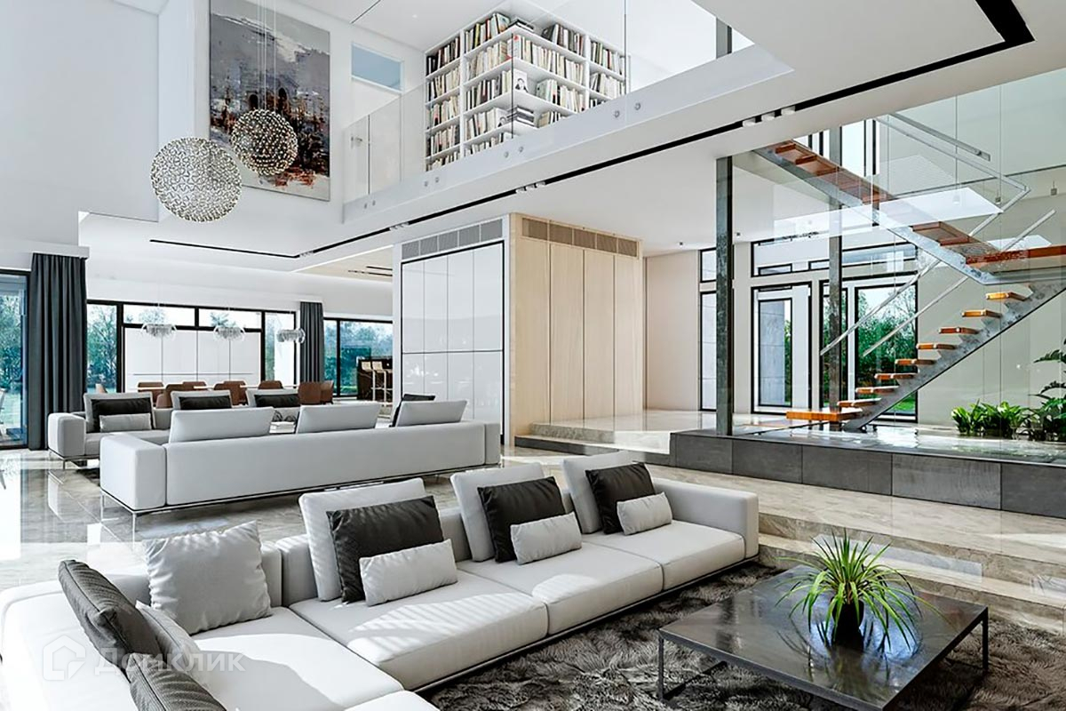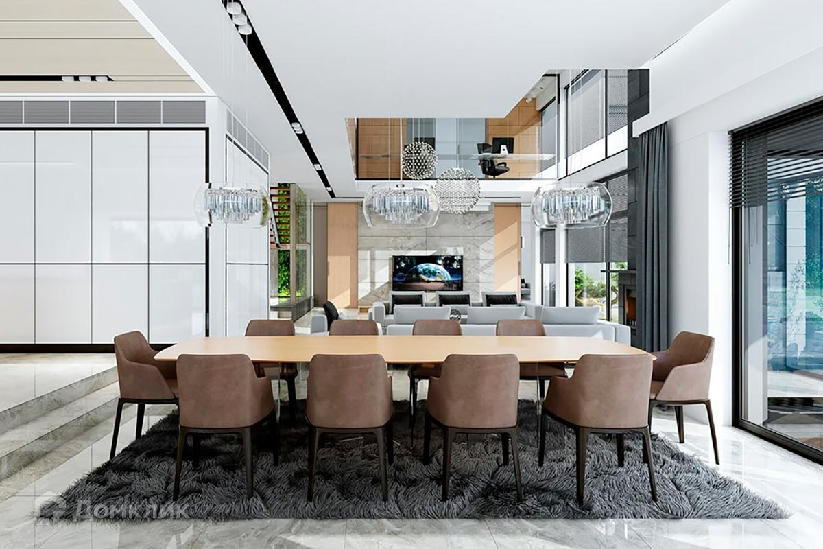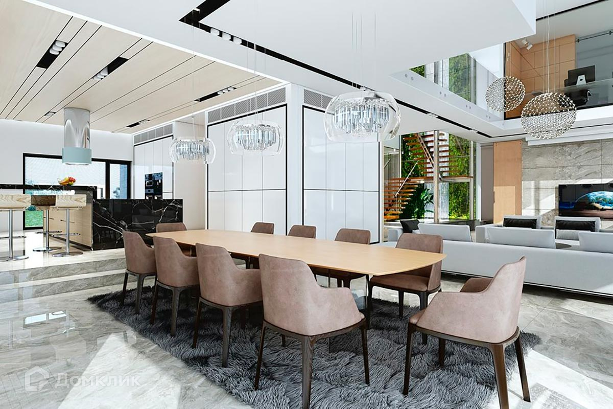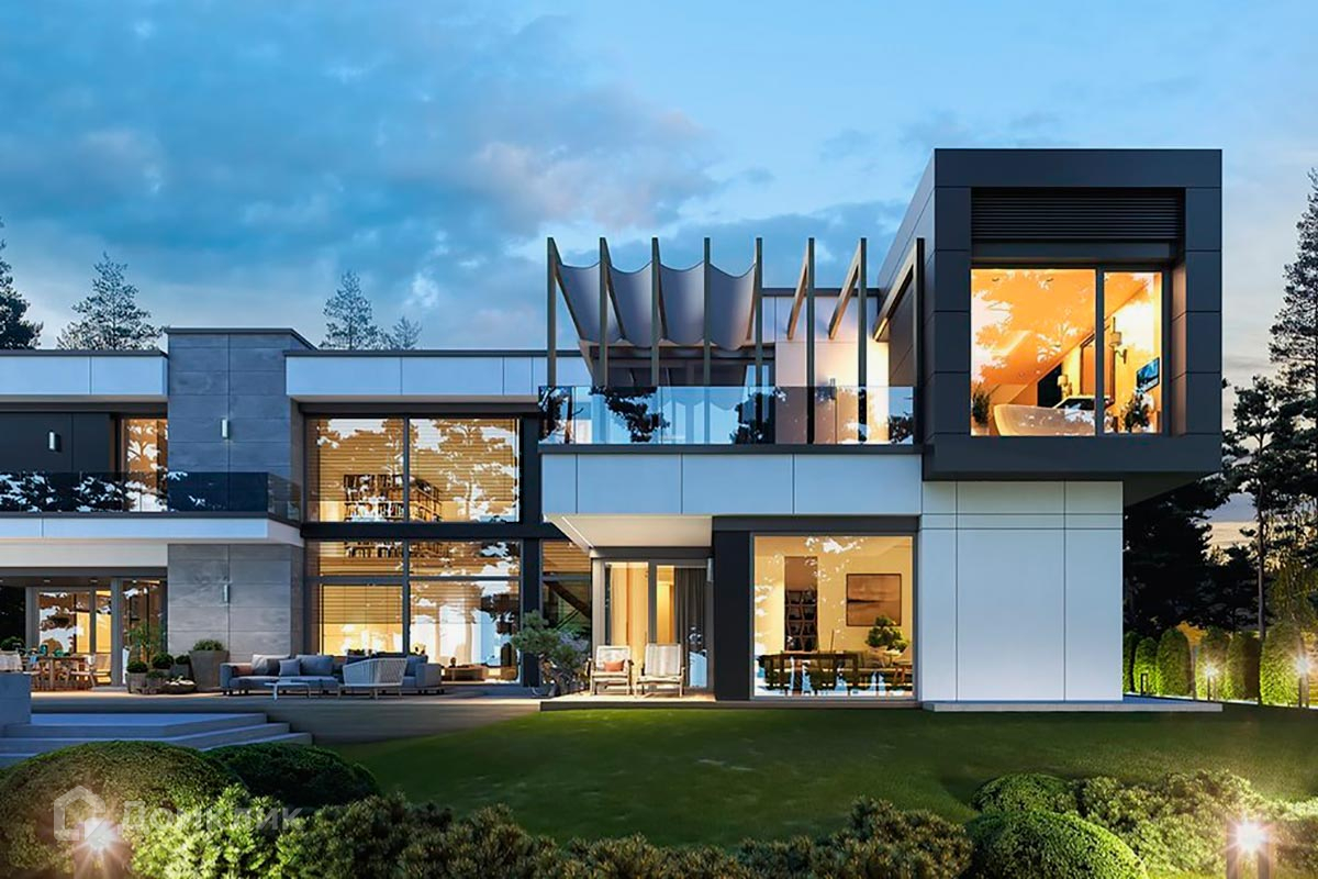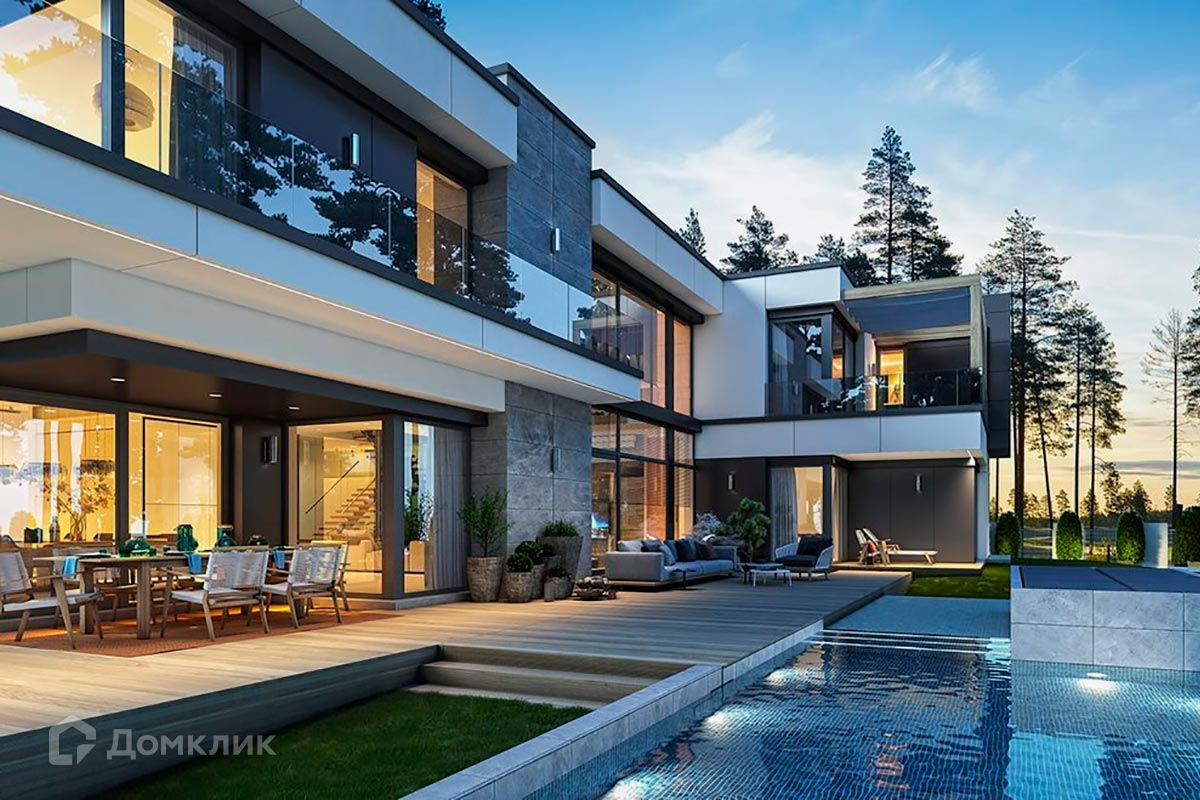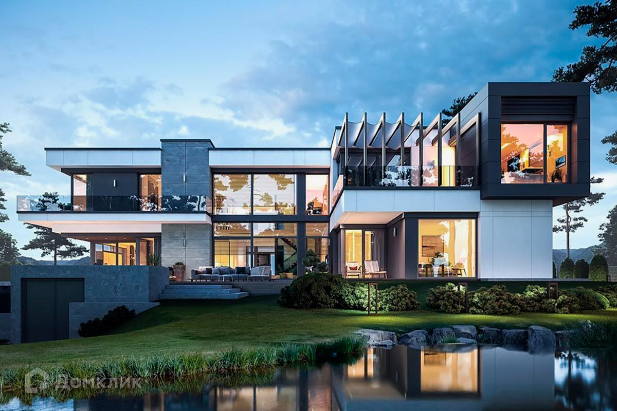 Планировкой дома предусмотрены большая гостиная с панорамными окнами, SPA-зона с бассейном на открытой террасе, пять спален, гараж на 3 машиноместа.