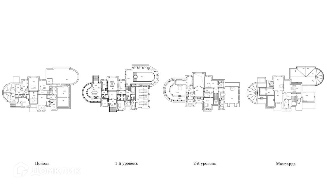 4 спальни с гардеробными и с/у, лестничный холл;