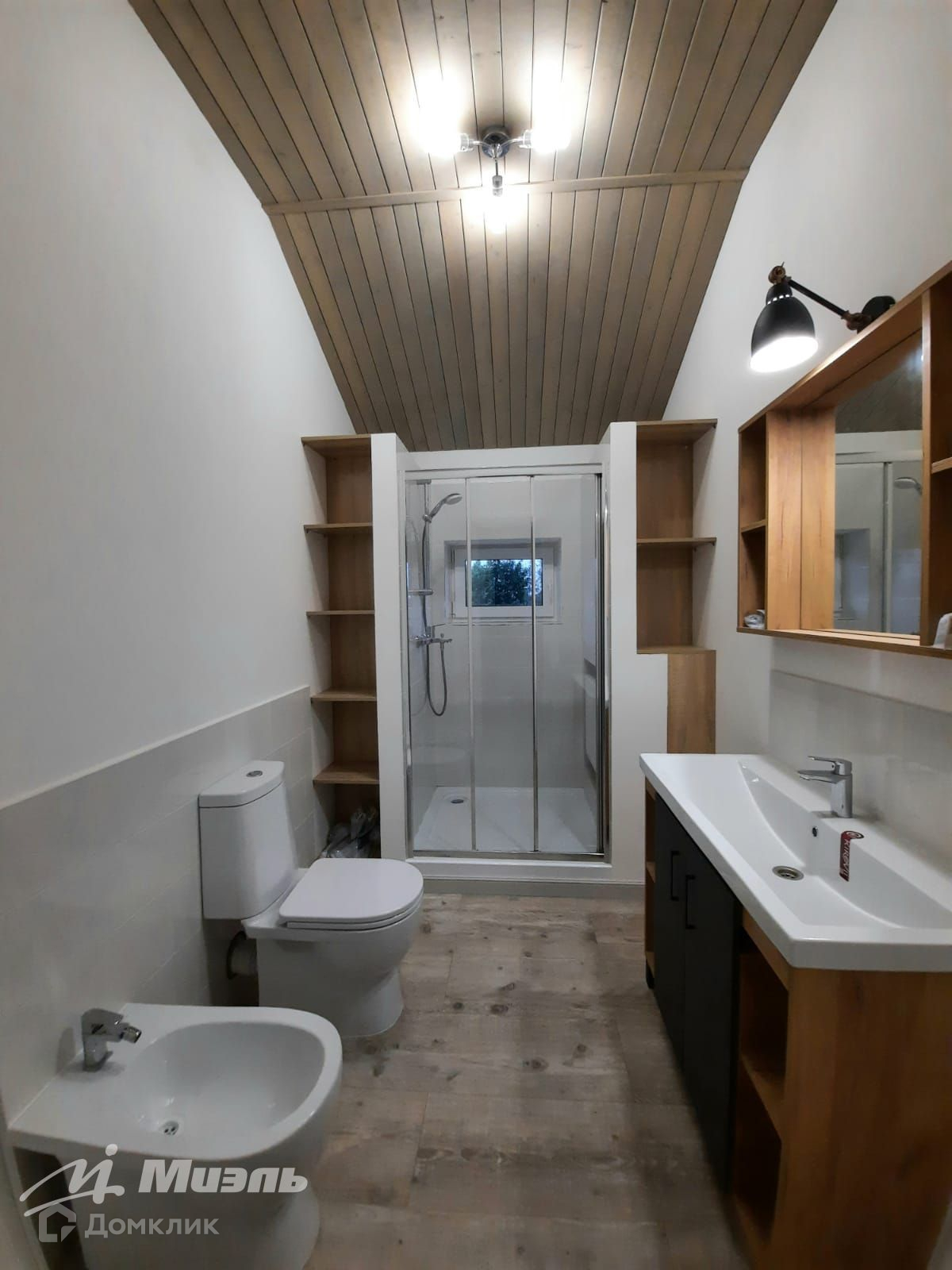 Дом выполнен в современном стиле, с использованием экологичных отделочных материалов. Дом очень теплый, для обогрева достаточно работы теплых полов.