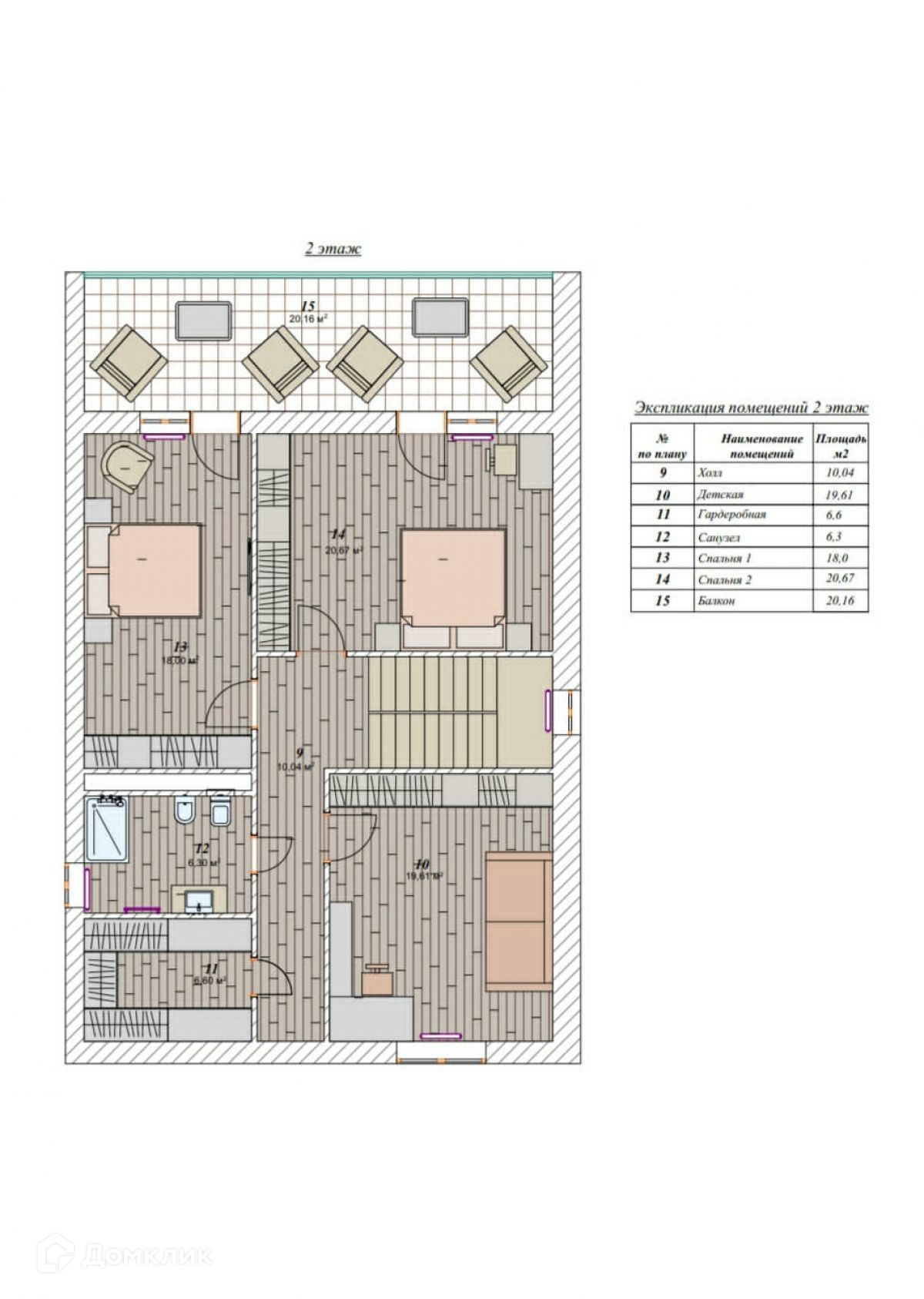 - 2 этаж: три спальни, 1 с/у.