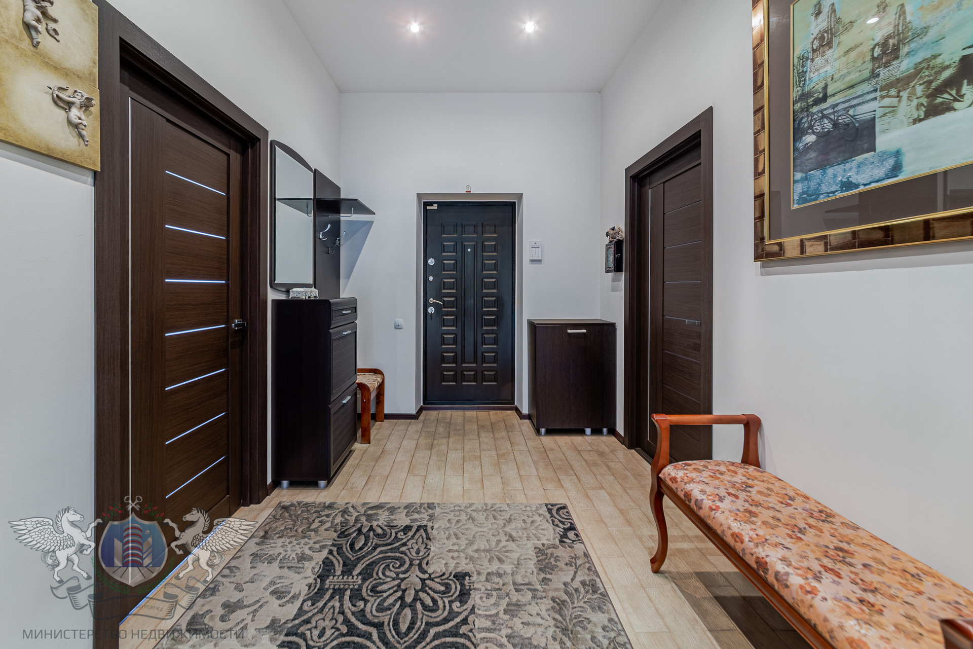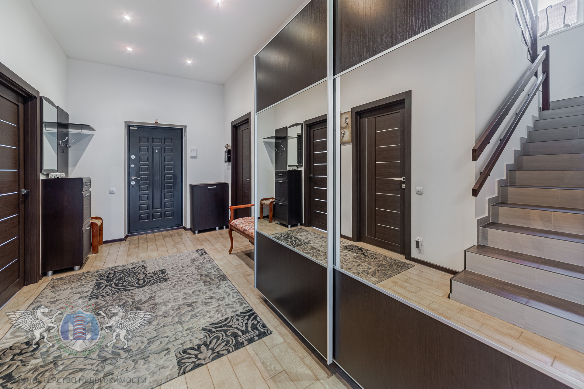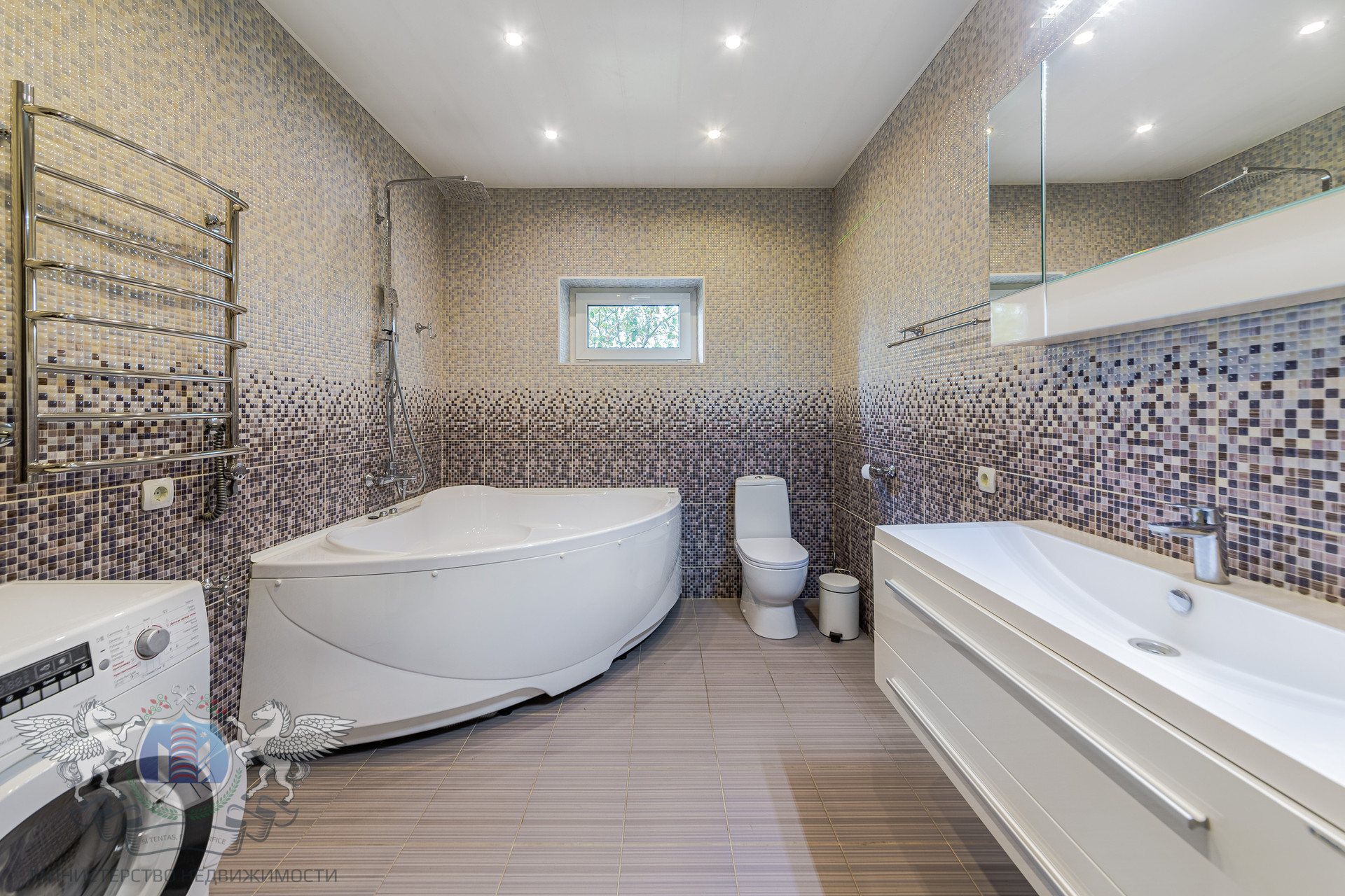 В доме сделан хороший ремонт: выровнены стены с антивандальным покрытием, натяжные потолки, на полу ламинат и плитка, надёжная электрика и сантехника, трёхслойные стеклопакеты с рольставнями, качественные радиаторы отопления, теплые полы, кондиционеры, установлена система очистки воды.